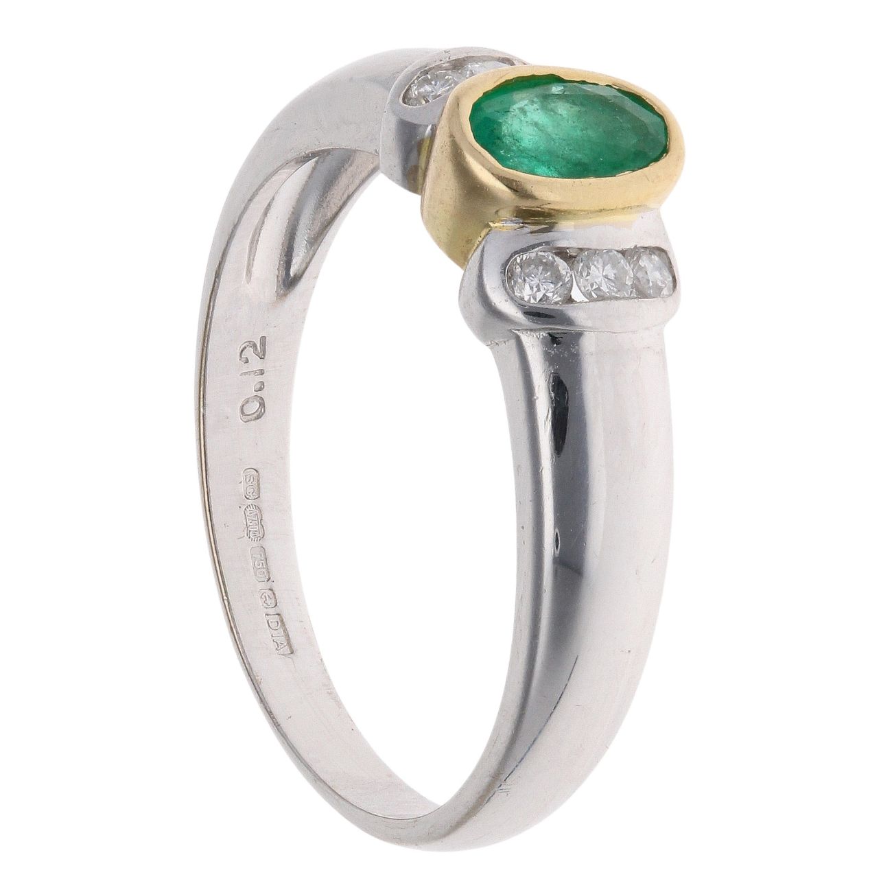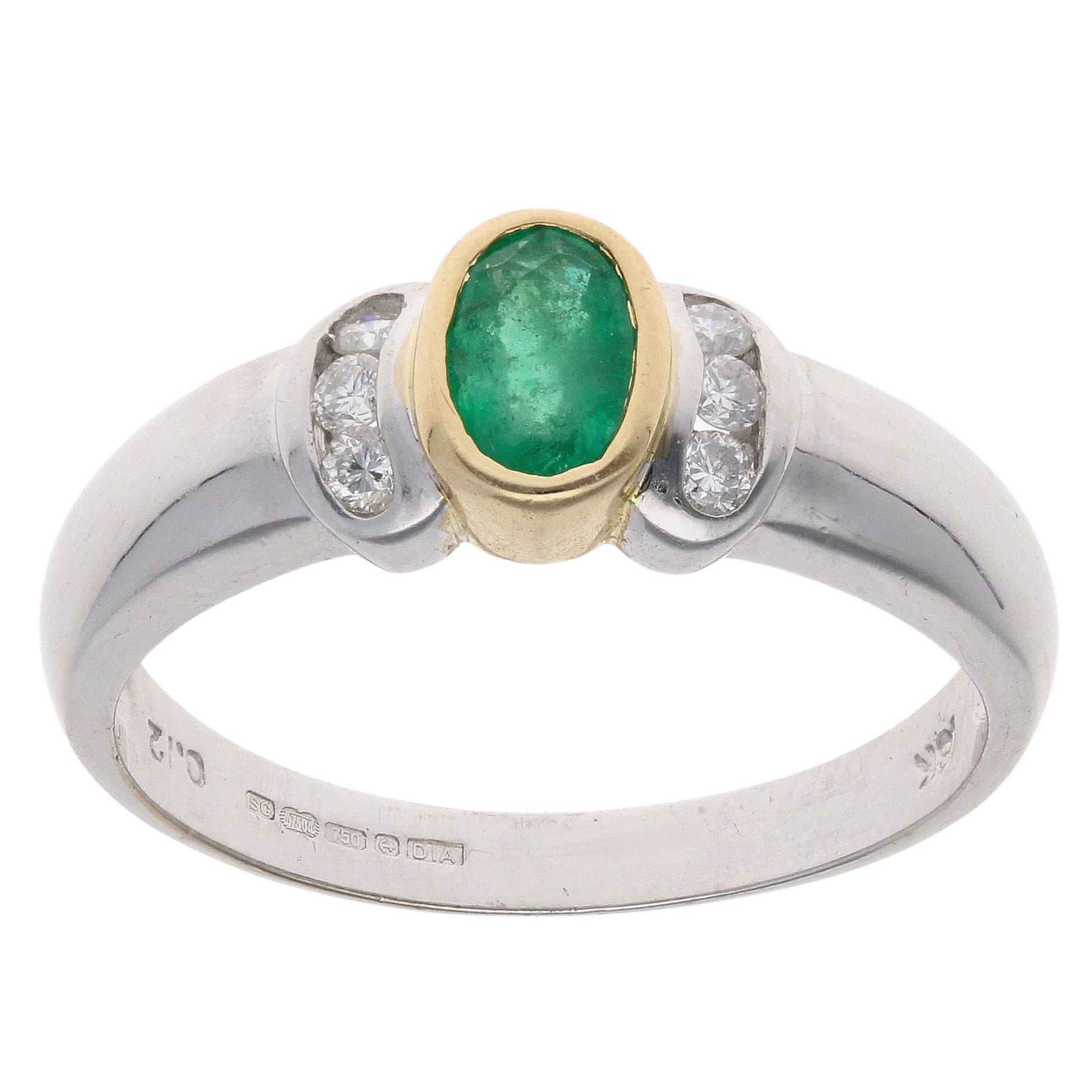 18ct Yellow And White Gold 0.12ct Diamond And Emerald Ring
