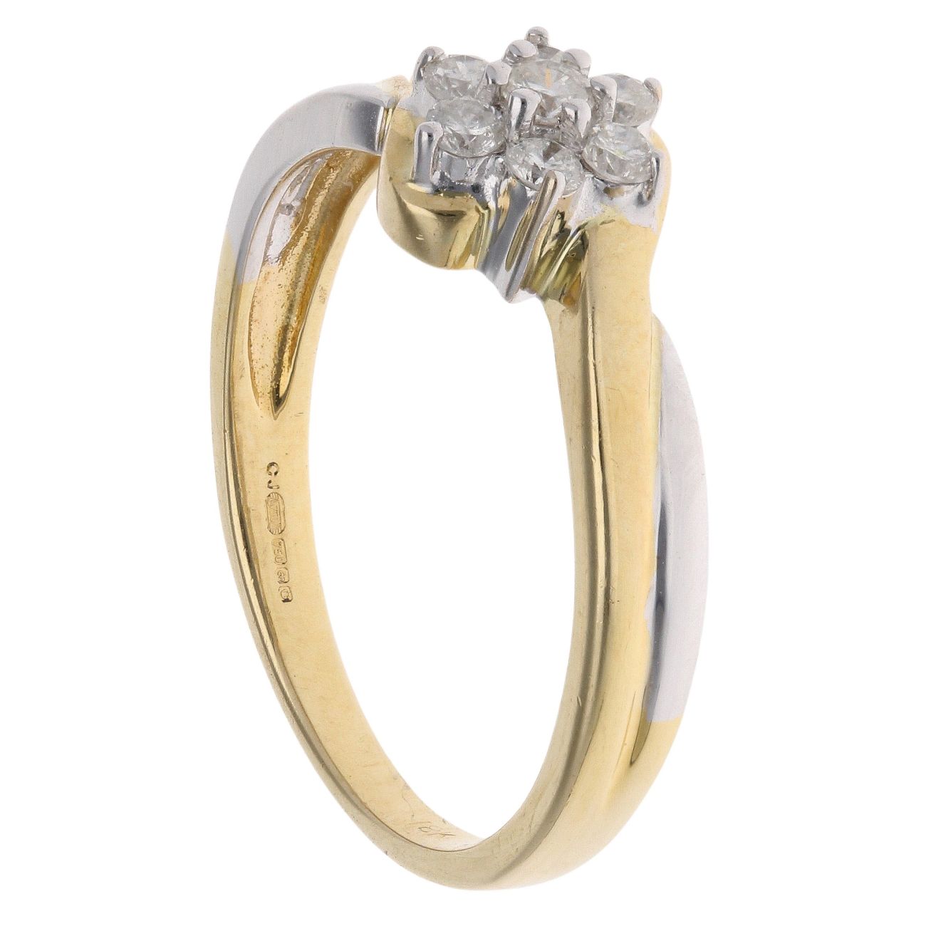 18ct Yellow And White Gold 0.25ct Brilliant Cut Diamond Cluster Twist Ring