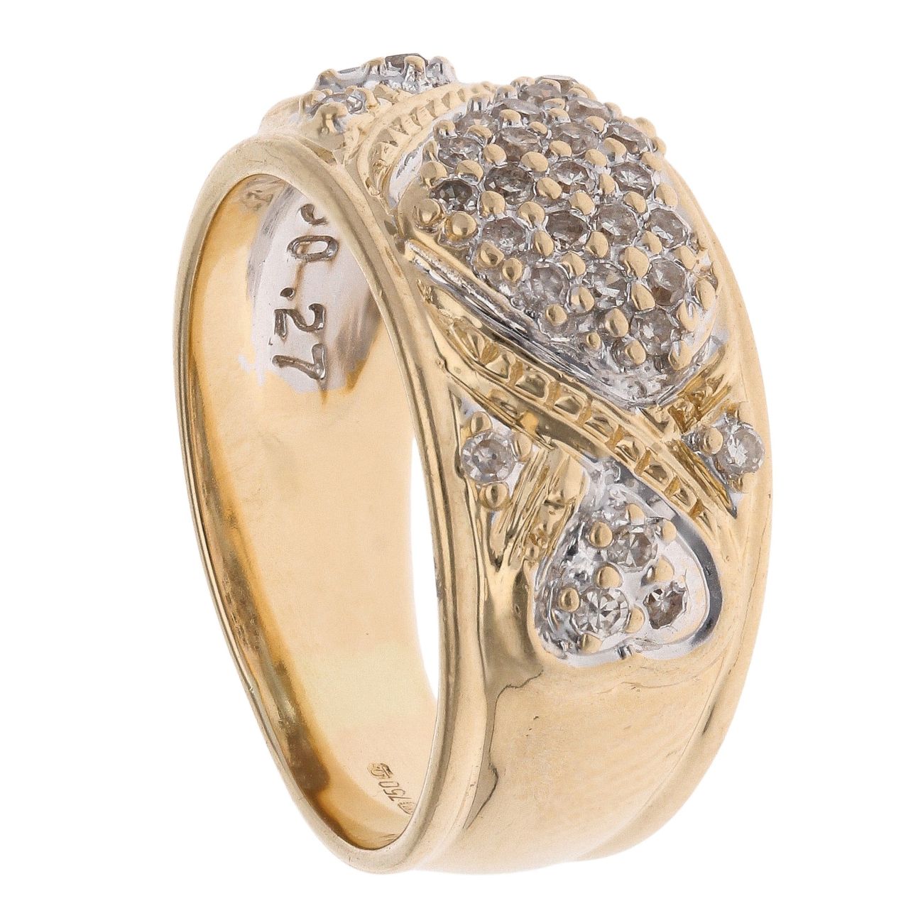 18ct Yellow And White Gold 0.25ct Brilliant Cut Diamond Fancy Heart Patterned Ring