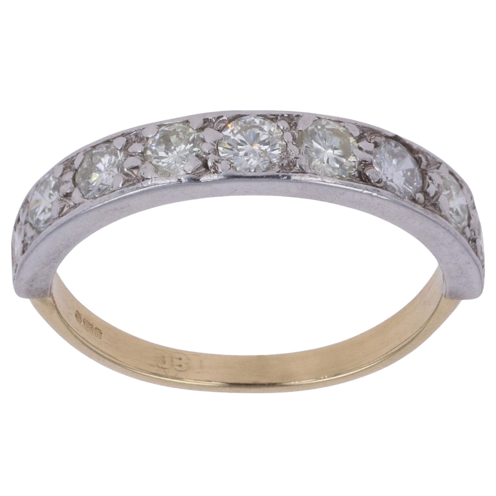 18ct Yellow And White Gold 1.00ct Brilliant Cut Diamond Half Eternity Ring