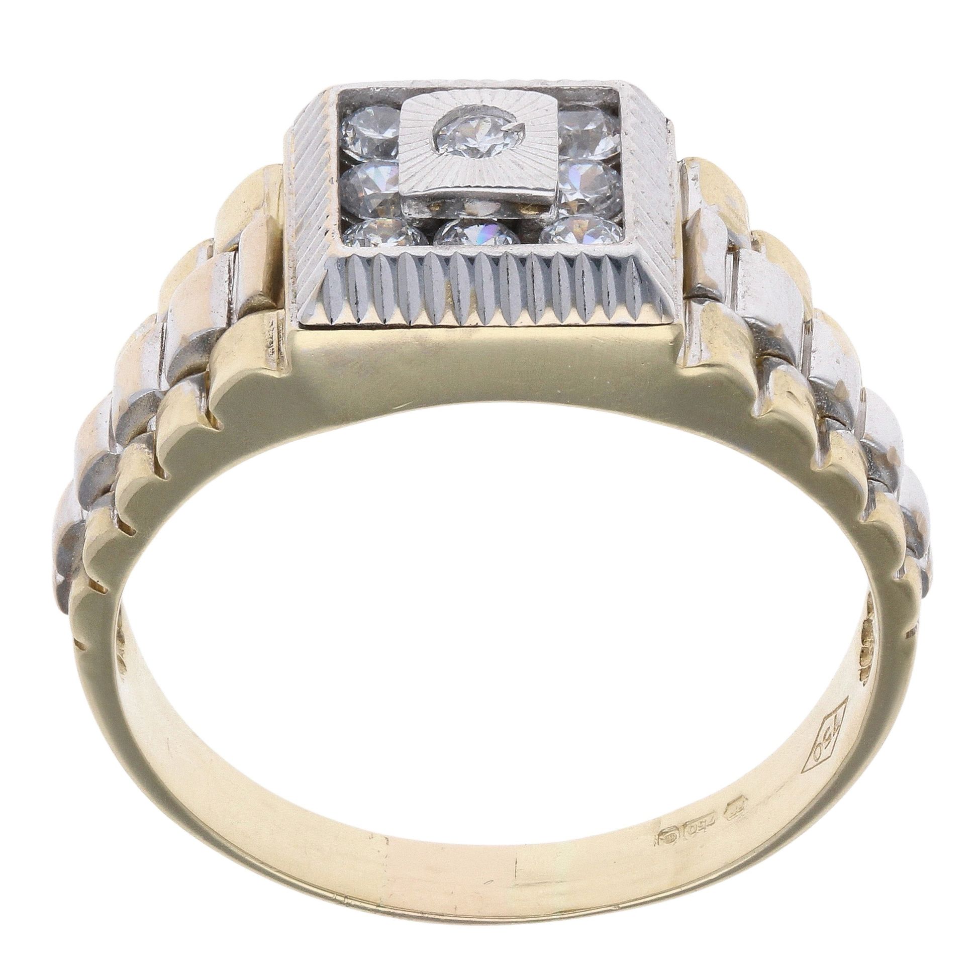 18ct Yellow And White Gold Cubic Zirconia Watch Style Signet Ring