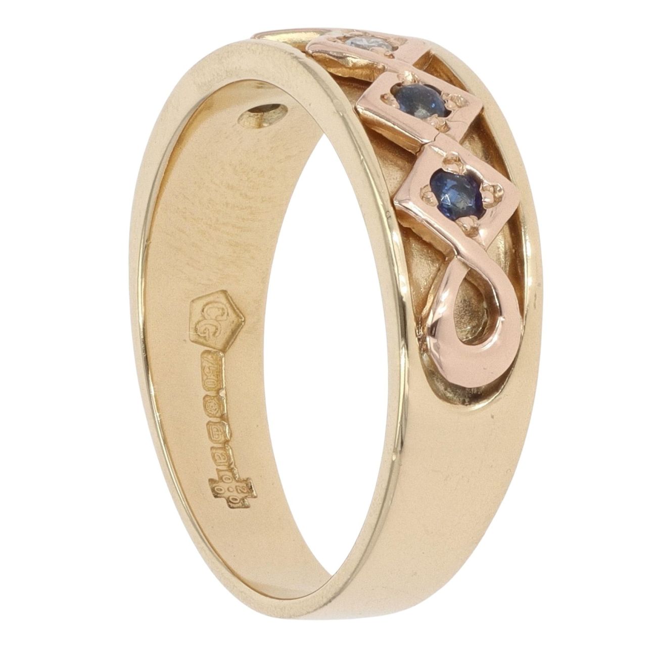 18ct Yellow Gold 0.03ct Diamond and Sapphire Clogau Ring