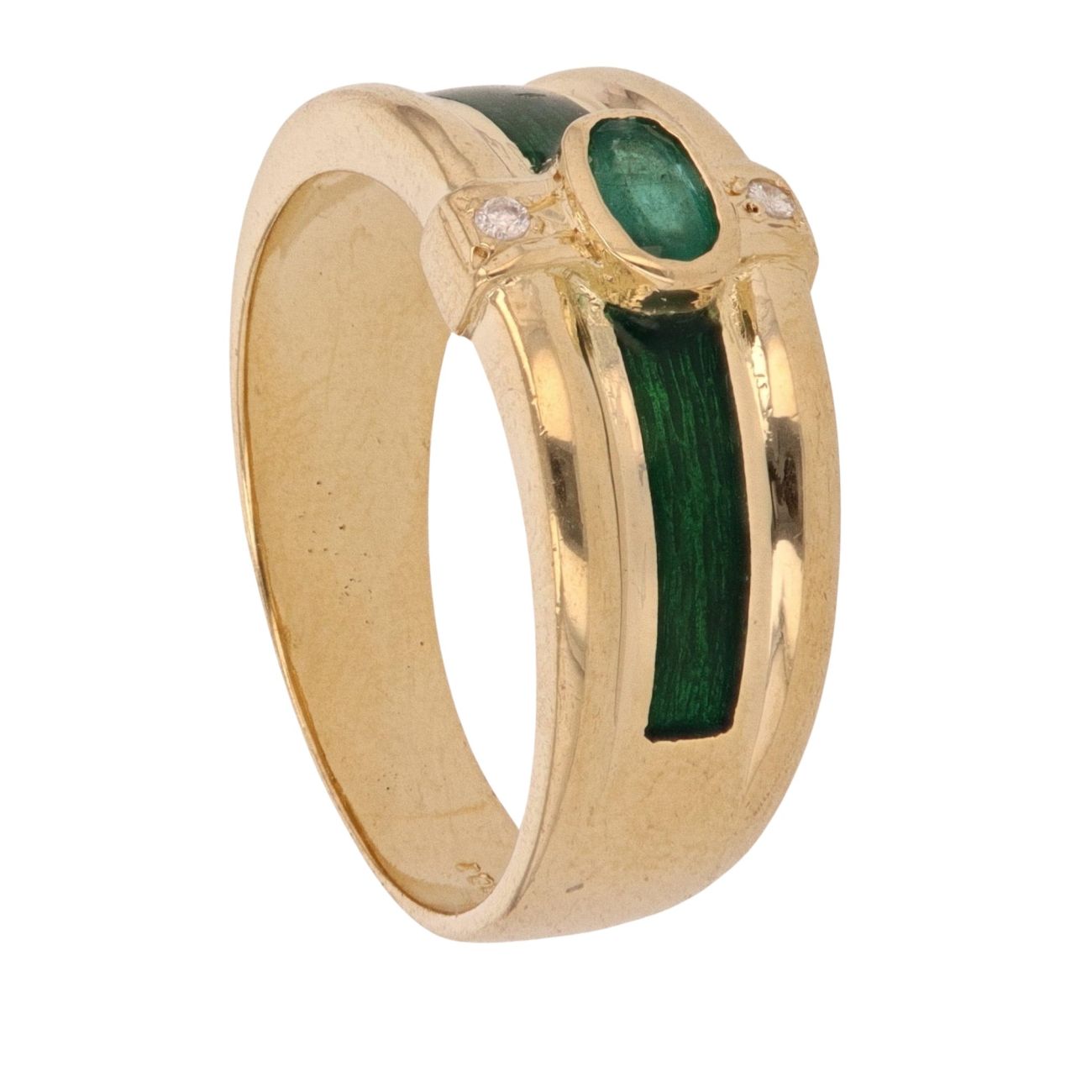 18ct Yellow Gold 0.05ct Brilliant and Oval Cut Diamond and Emerald Ring