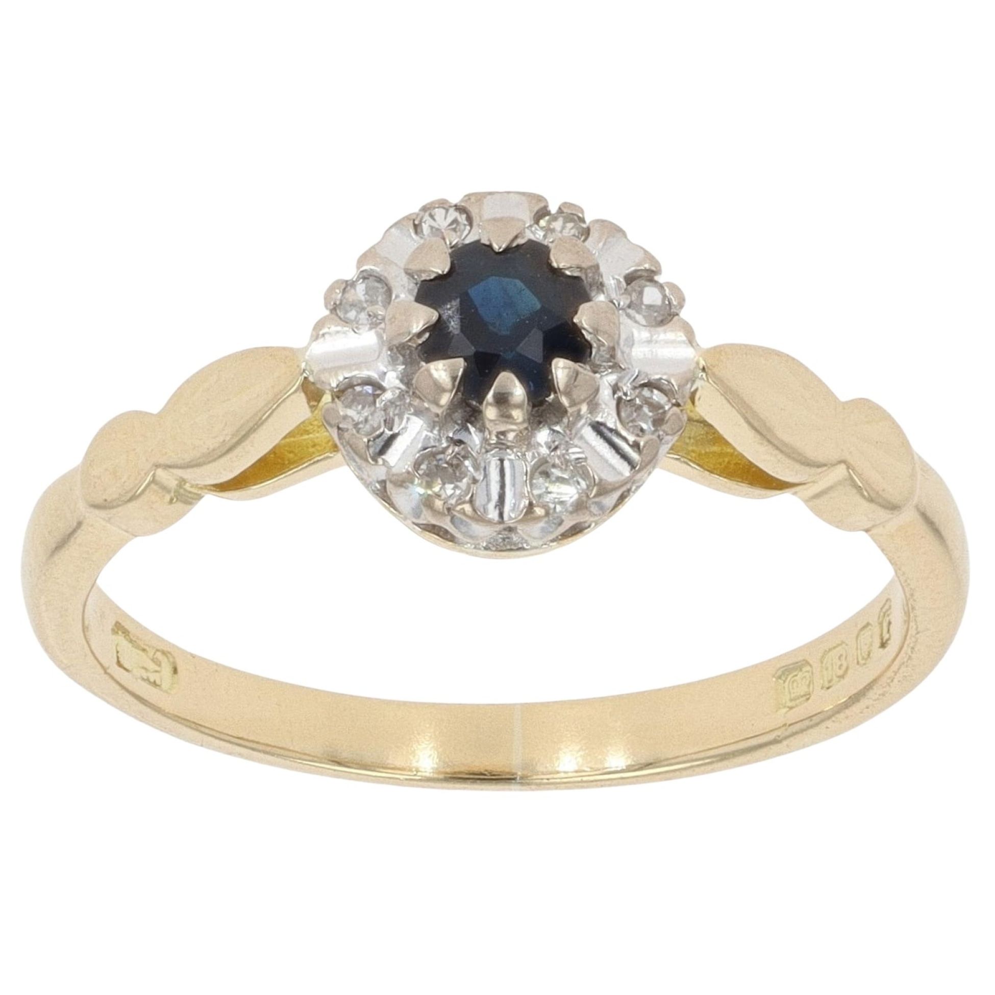 18ct Yellow Gold 0.05ct Diamond and Sapphire Cluster Ring