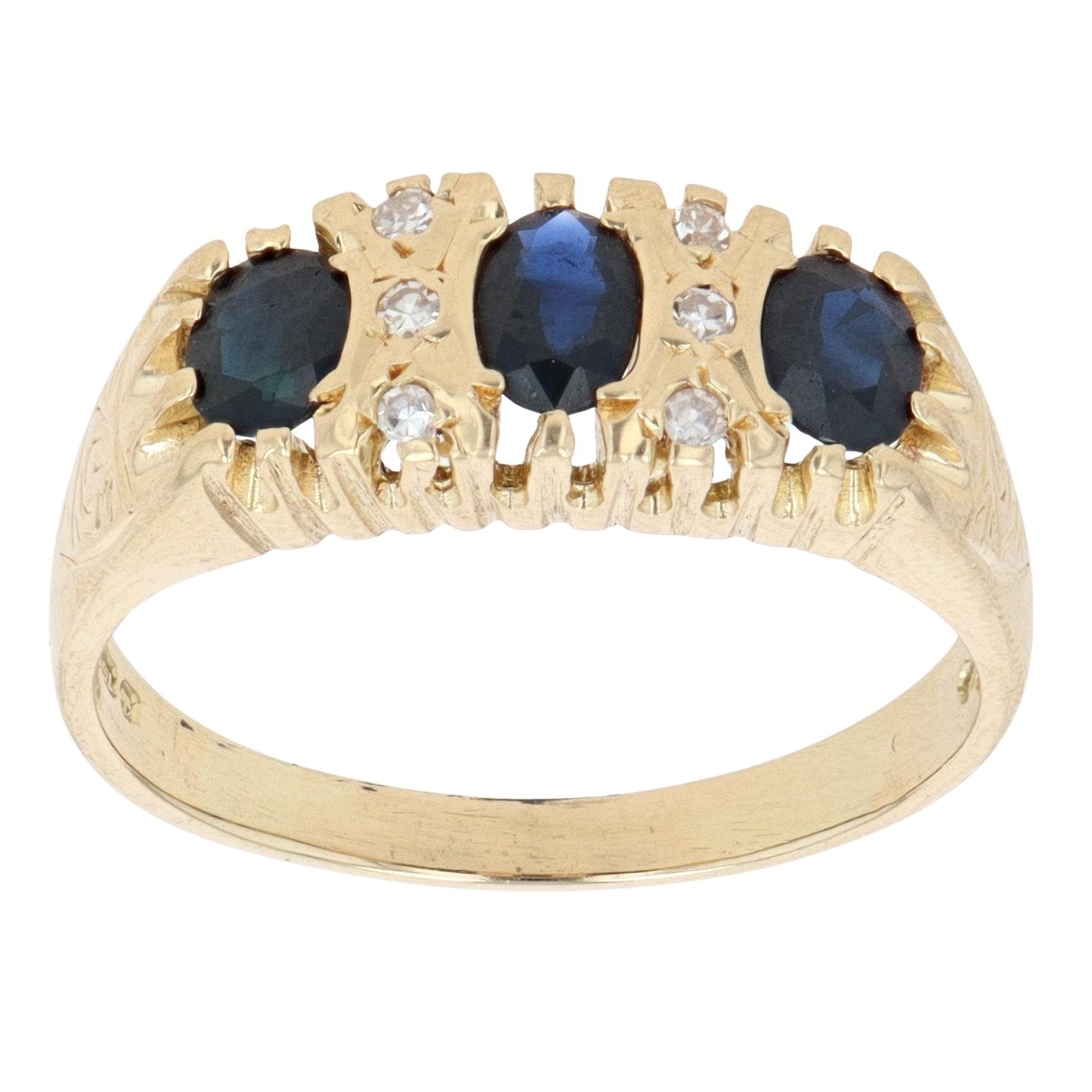 18ct Yellow Gold 0.05ct Diamond And Sapphire Fancy Ring