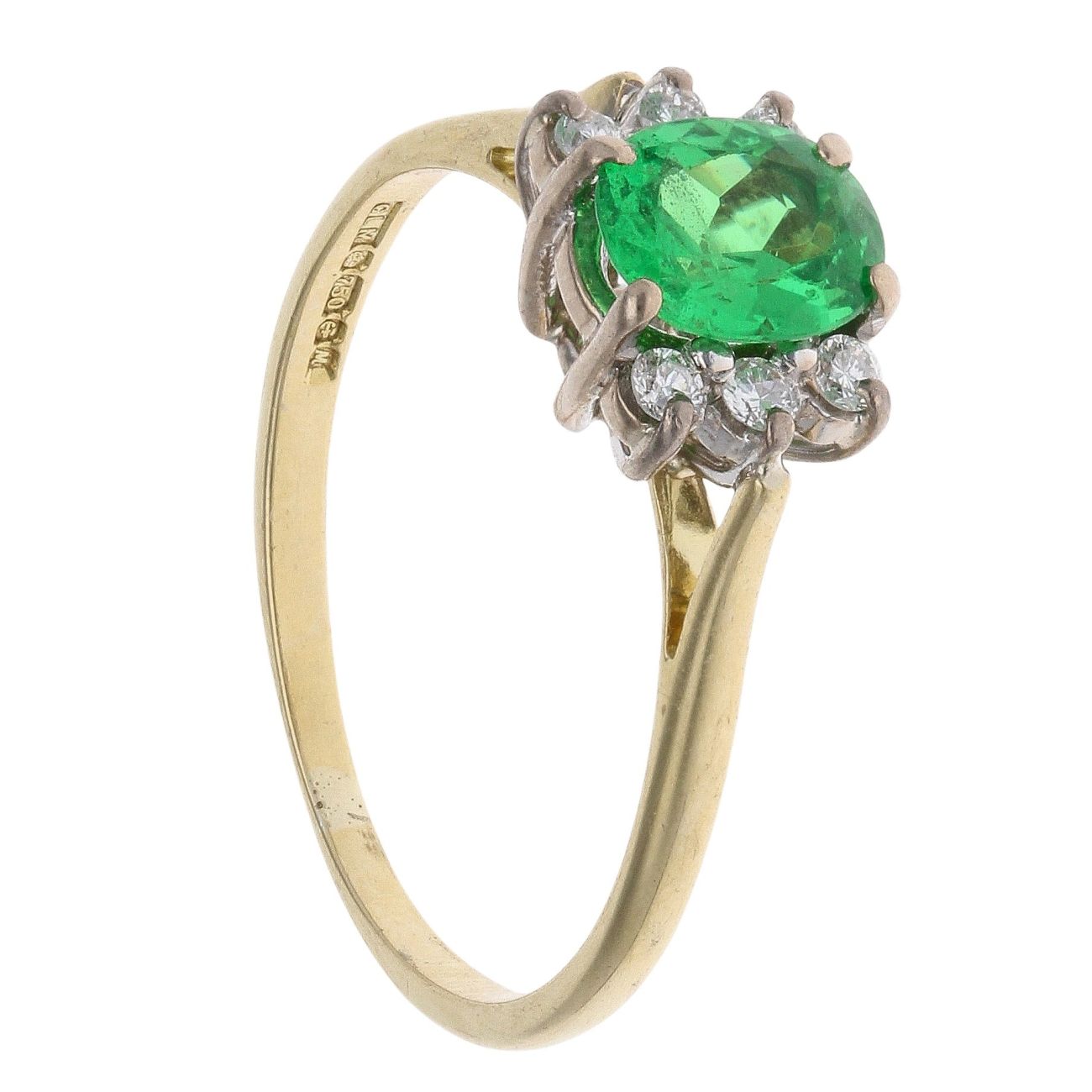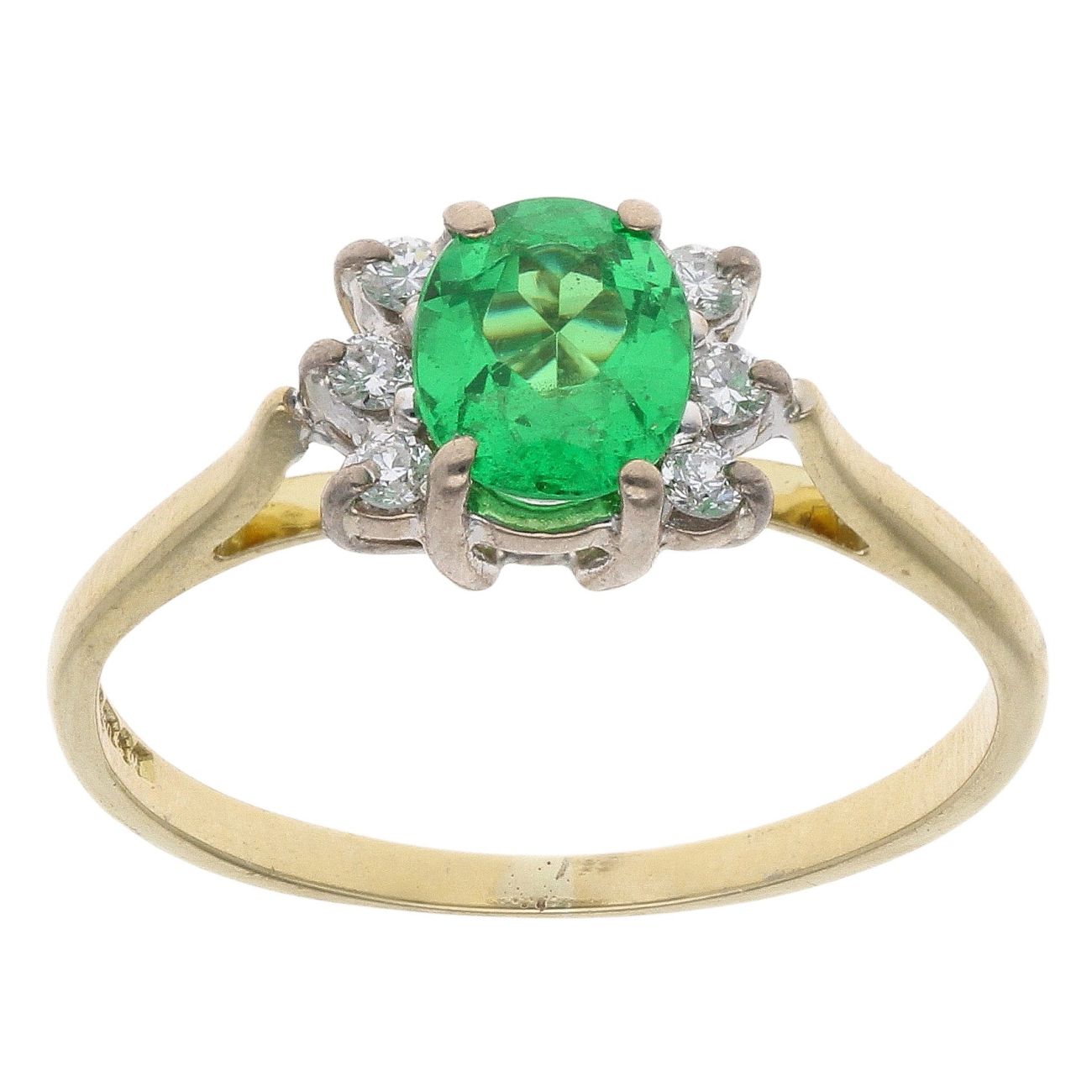 18ct Yellow Gold 0.05ct Diamonds and Created Emerald Dress Ring