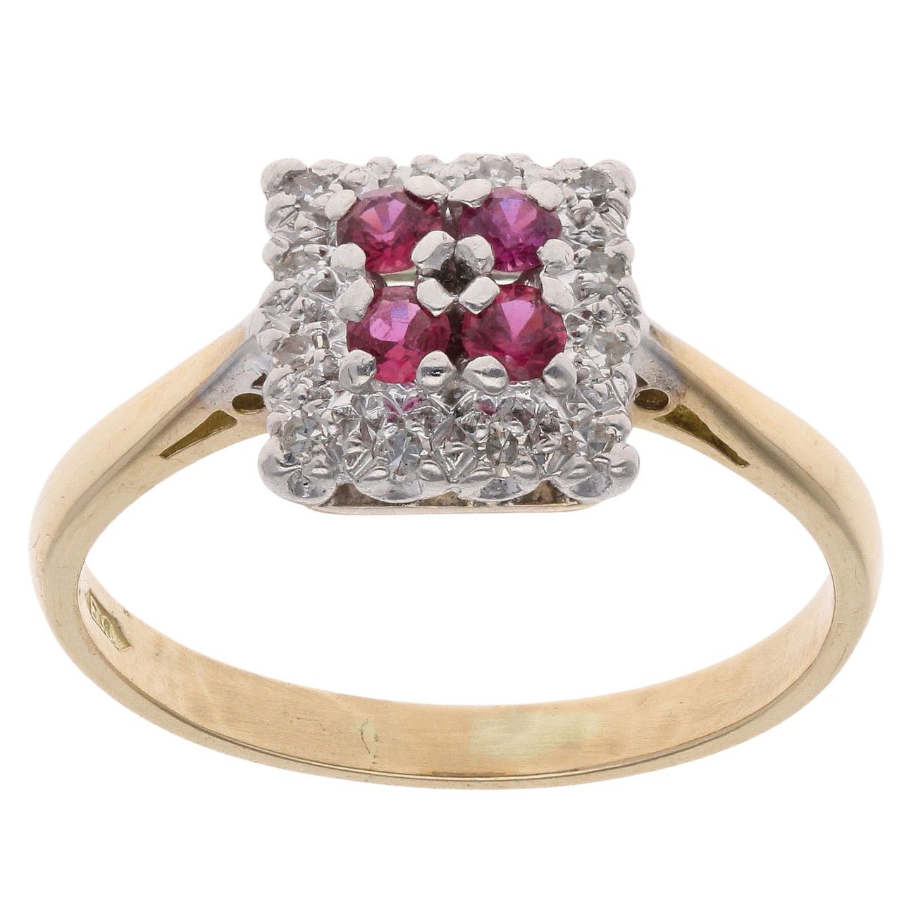18ct Yellow Gold 0.07ct Diamond And Ruby Cluster Ring