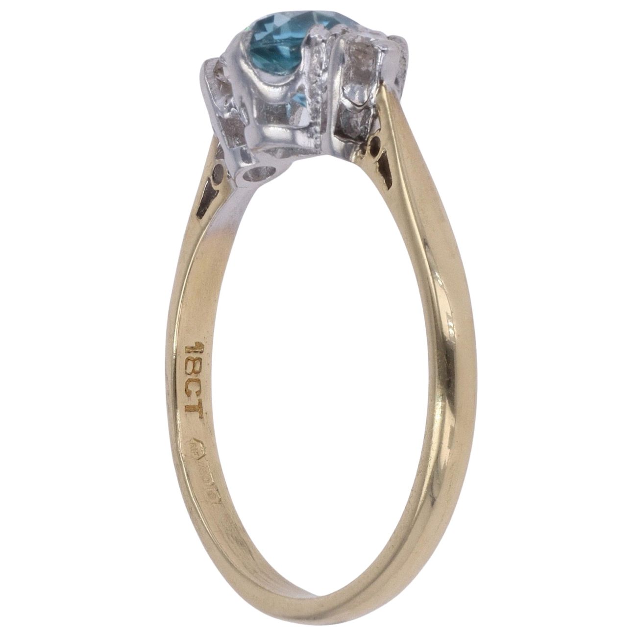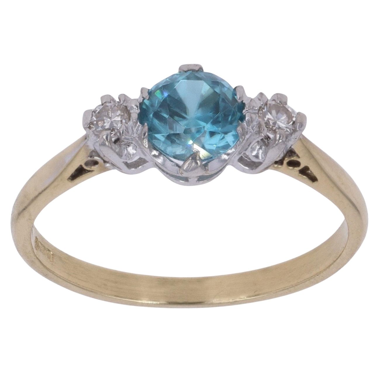 18ct Yellow Gold 0.10ct Diamond and Blue Zirconia Three Stone Ring