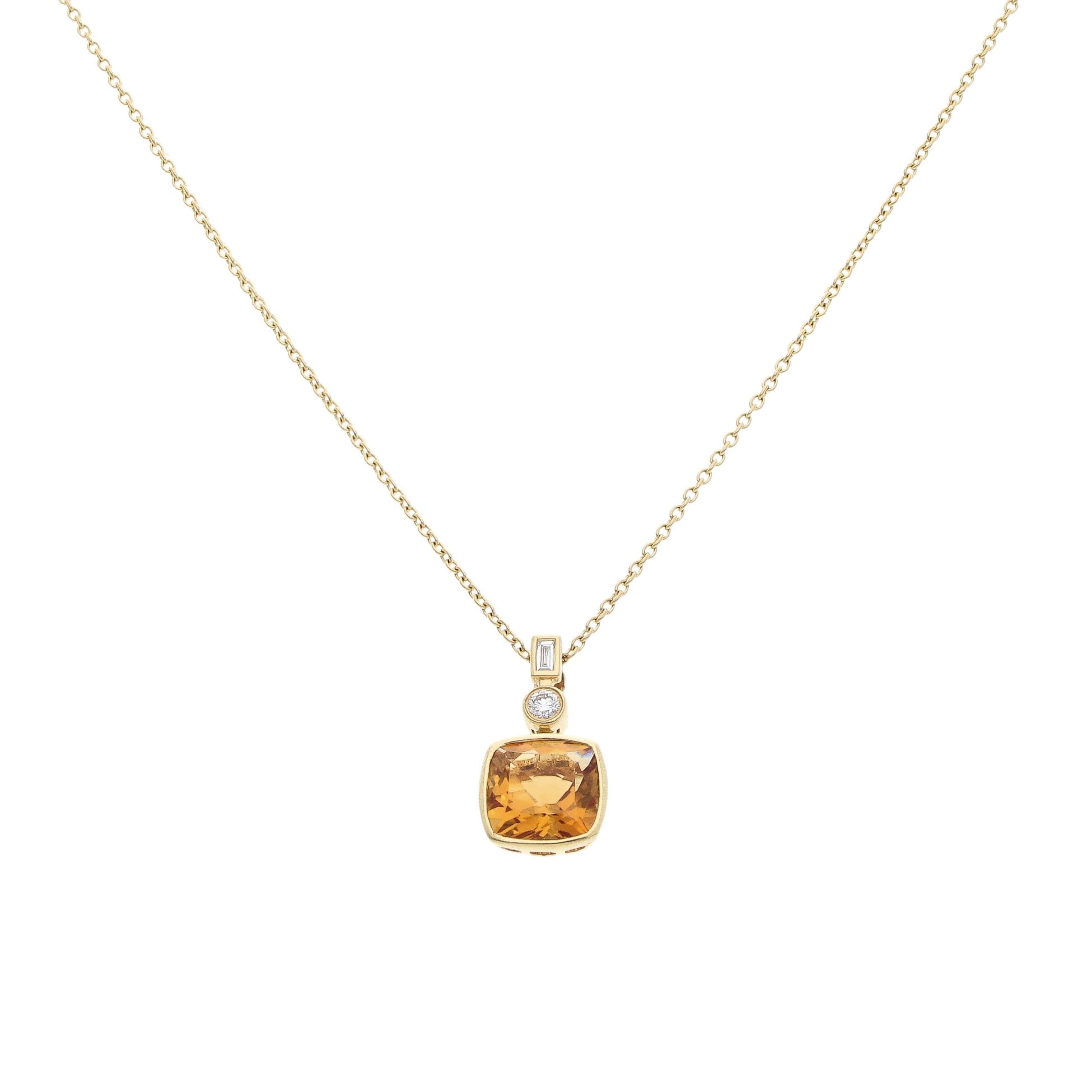 18ct Yellow Gold 0.10ct Diamond And Citrine Pendant And Chain 18"