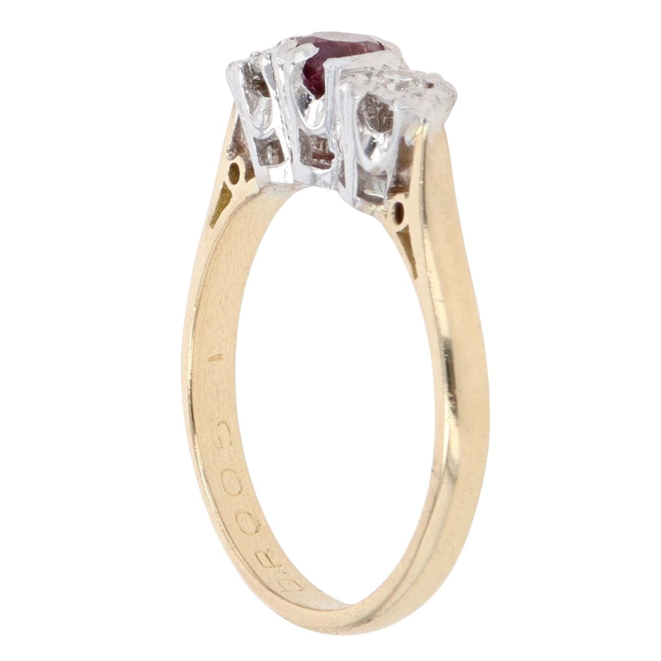 18ct Yellow Gold 0.10ct Diamond And Ruby Three Stone Ring