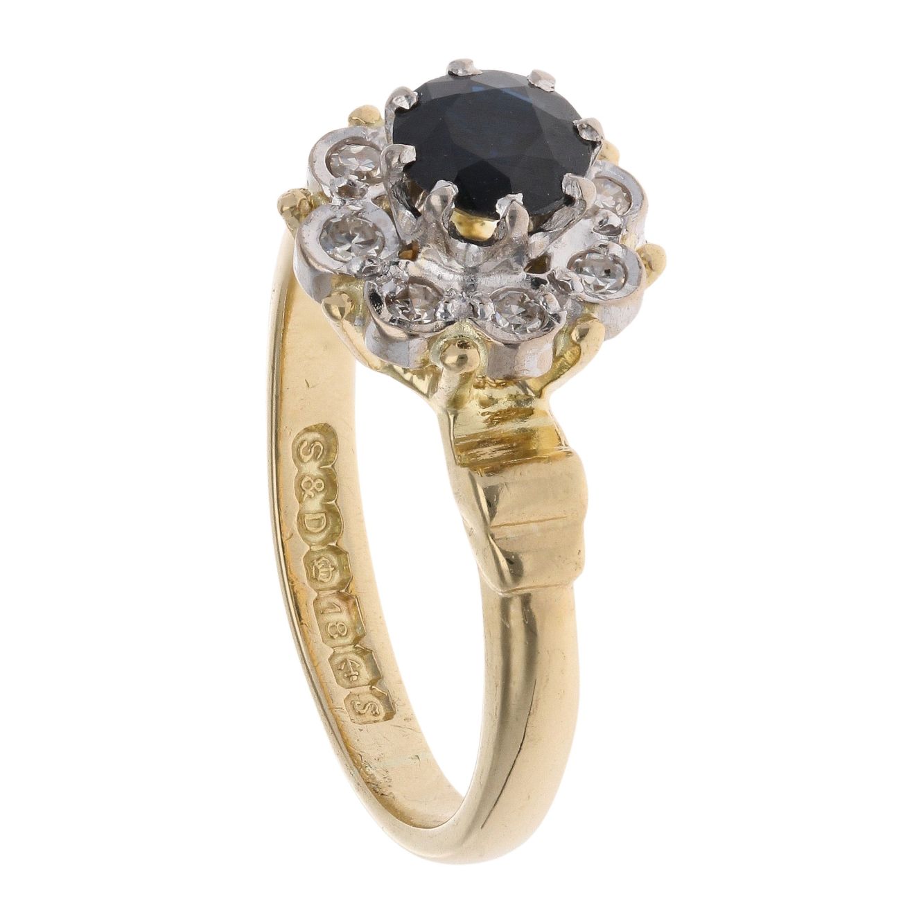 18ct Yellow Gold 0.10ct Diamond And Sapphire Cluster Ring