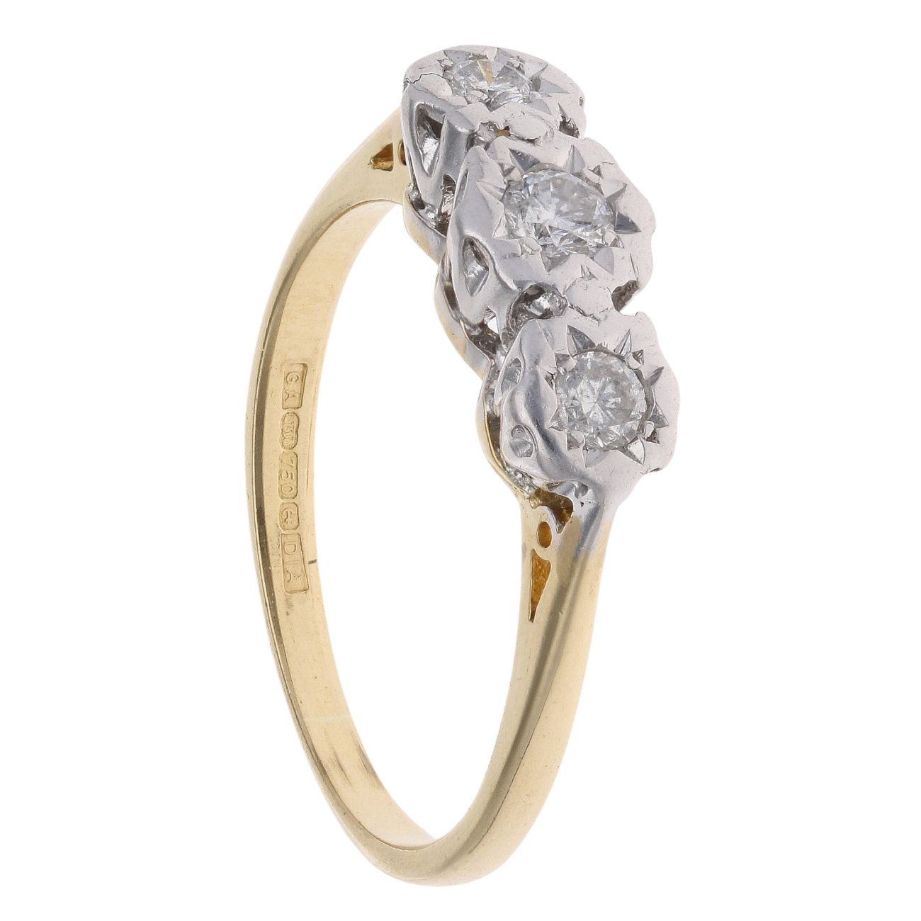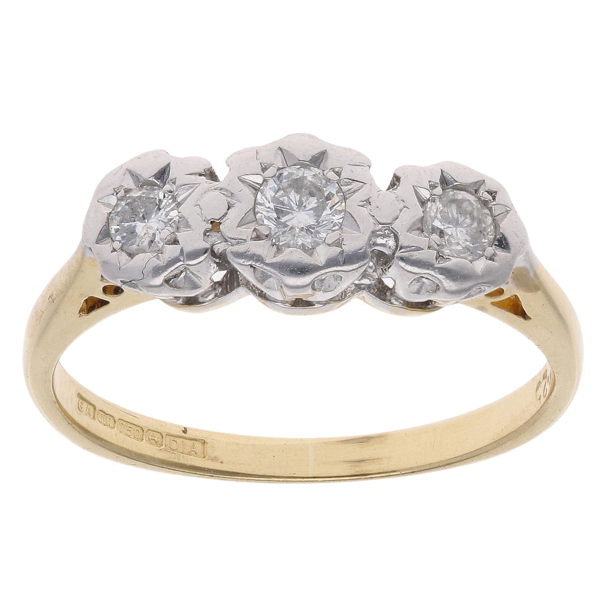 18ct Yellow Gold 0.25ct Brilliant Cut Diamond Trilogy Ring