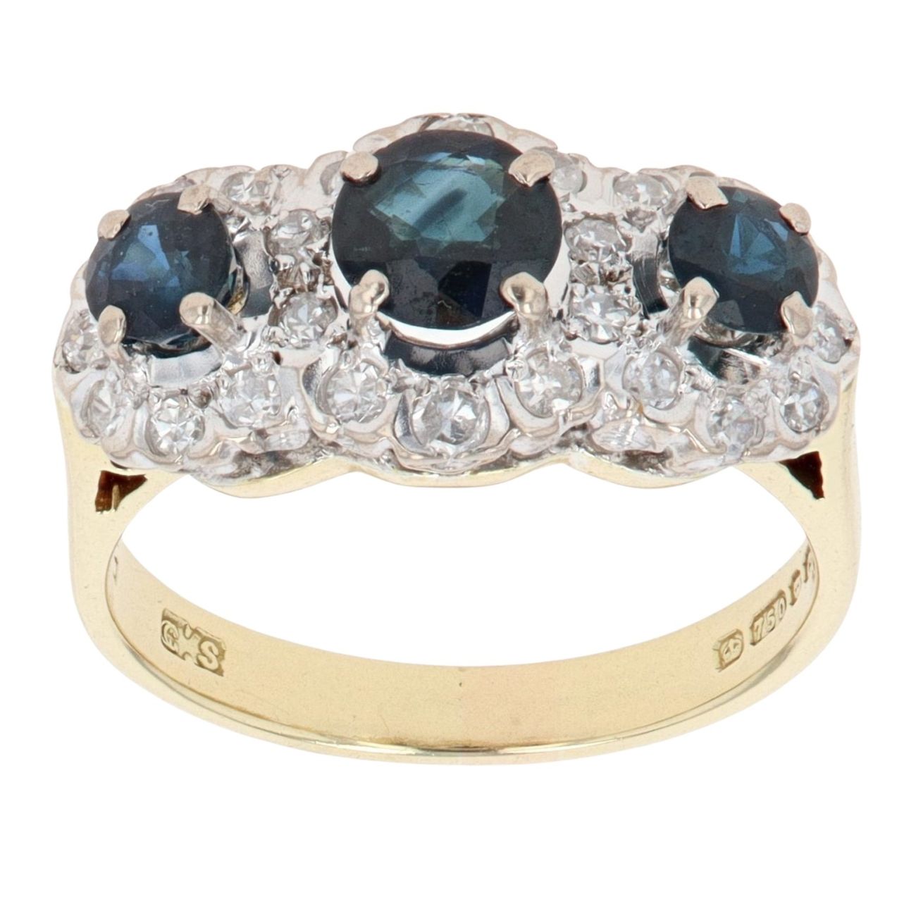 18ct Yellow Gold 0.25ct Diamond And Sapphire Triple Cluster Ring