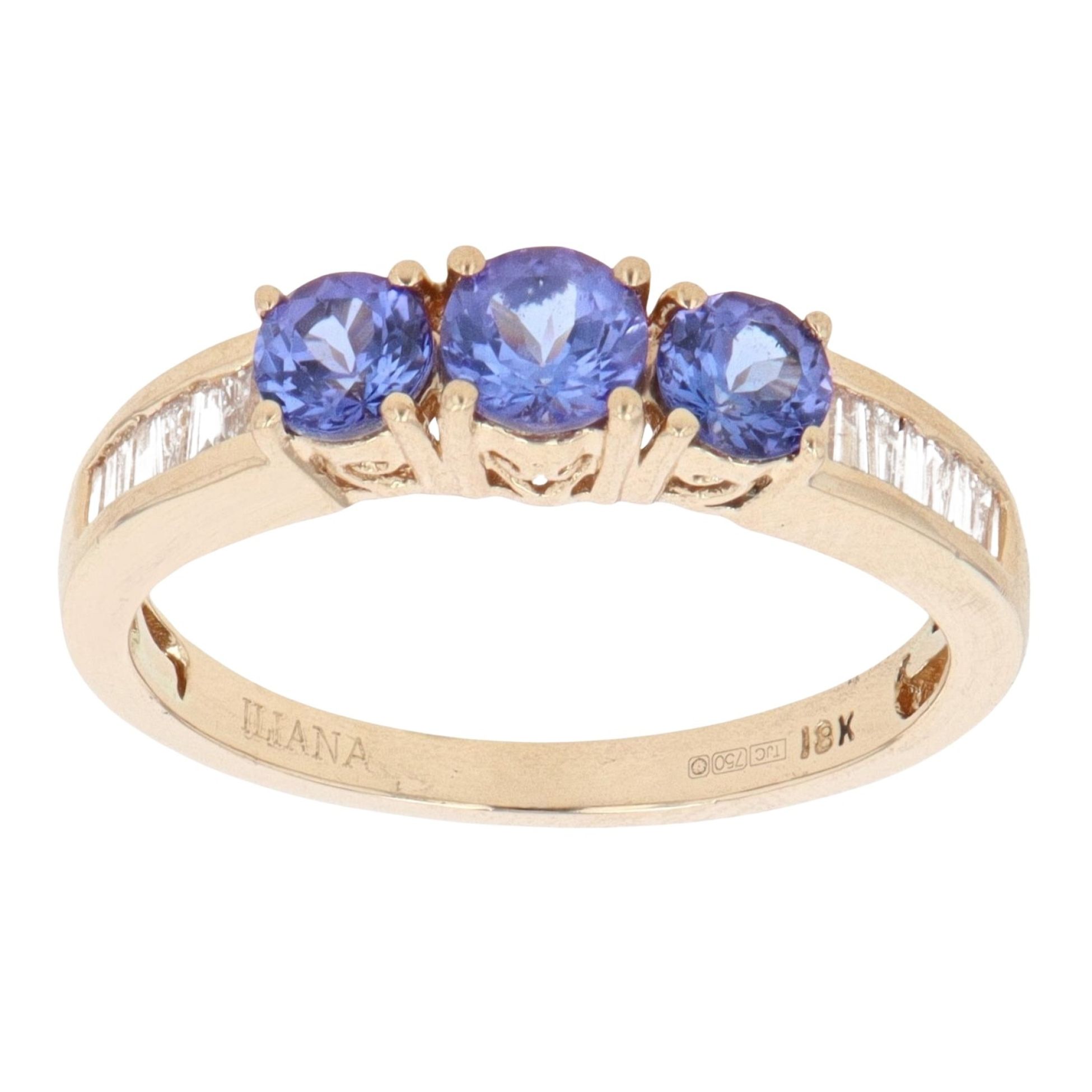18ct Yellow Gold 0.30ct Diamond And Tanzanite Three Stone Ring