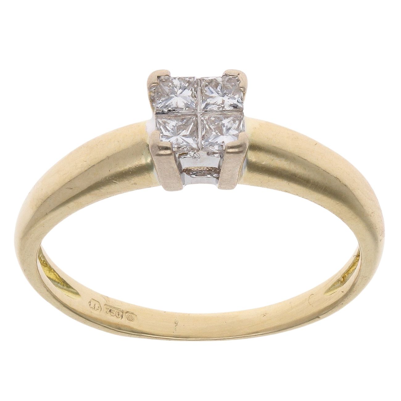 18ct Yellow Gold 0.30ct Princess Cut Diamond Cluster Ring