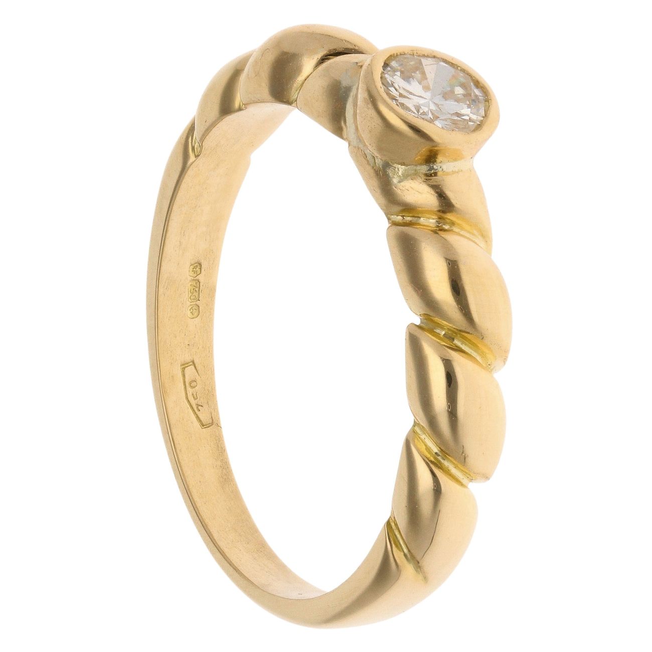 18ct Yellow Gold 0.33ct Brilliant Cut Diamond Solitaire Patterned Ring