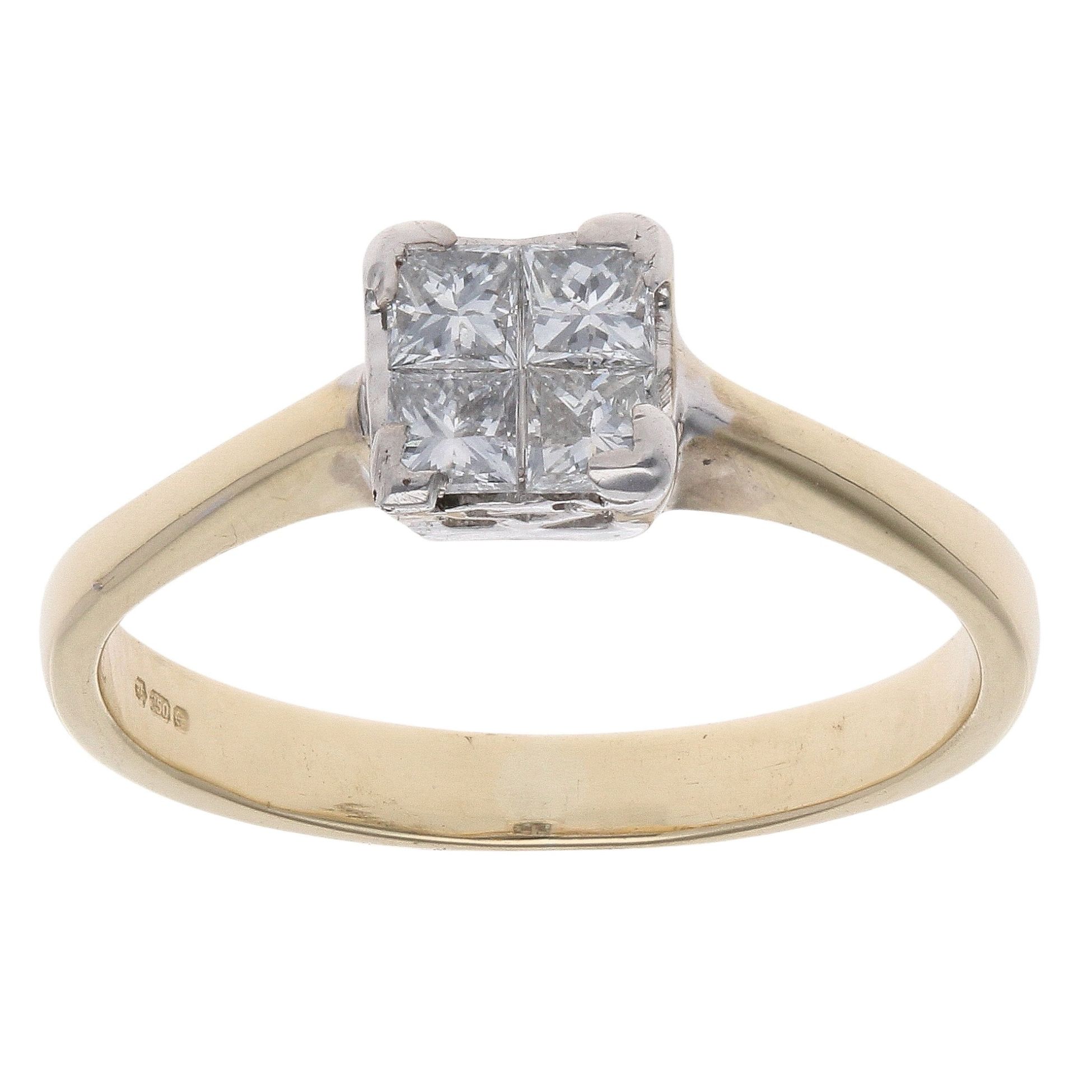 18ct Yellow Gold 0.40ct Princess Cut Diamond Cluster Ring