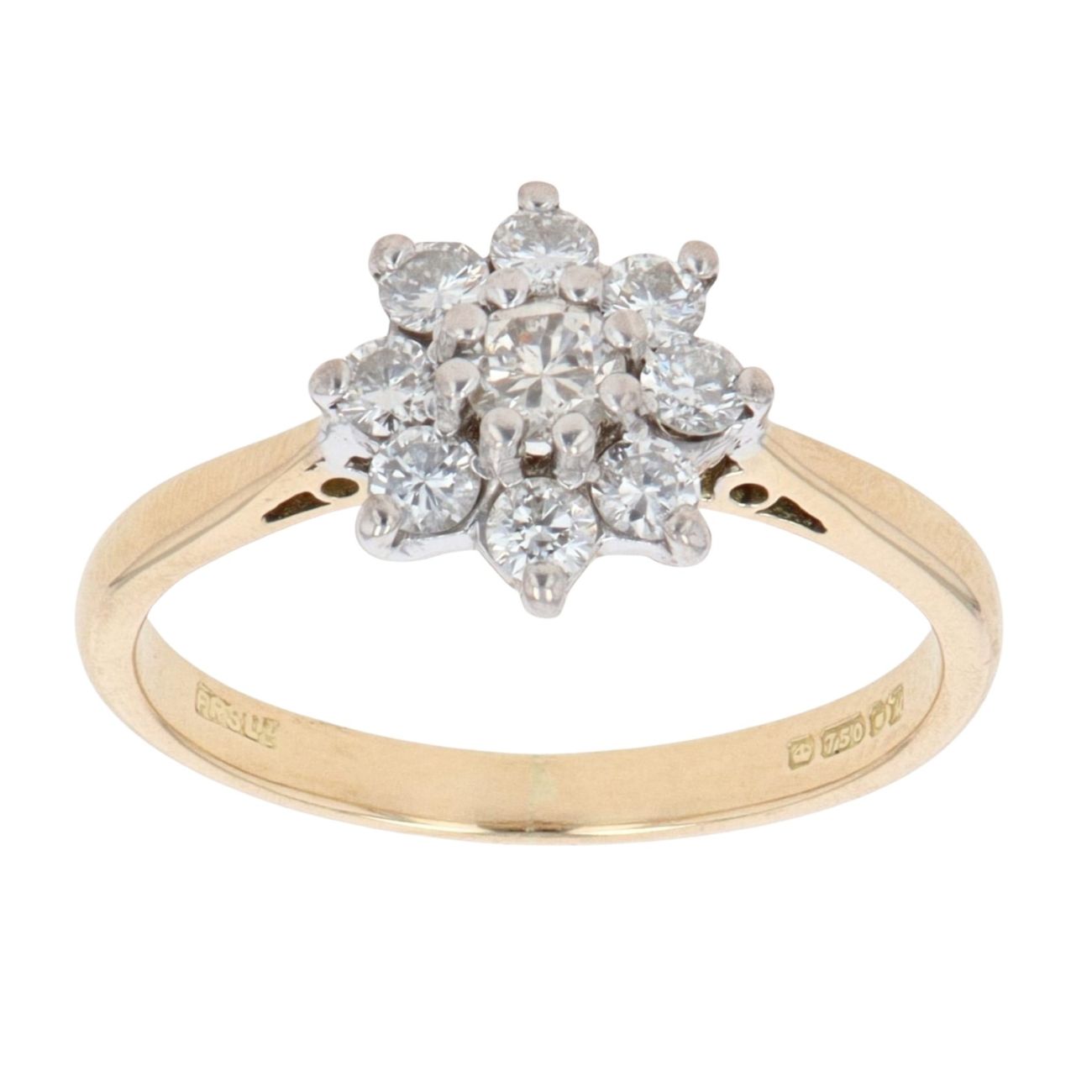 18ct Yellow Gold 0.45ct Brilliant Cut Diamond Floral Cluster Ring
