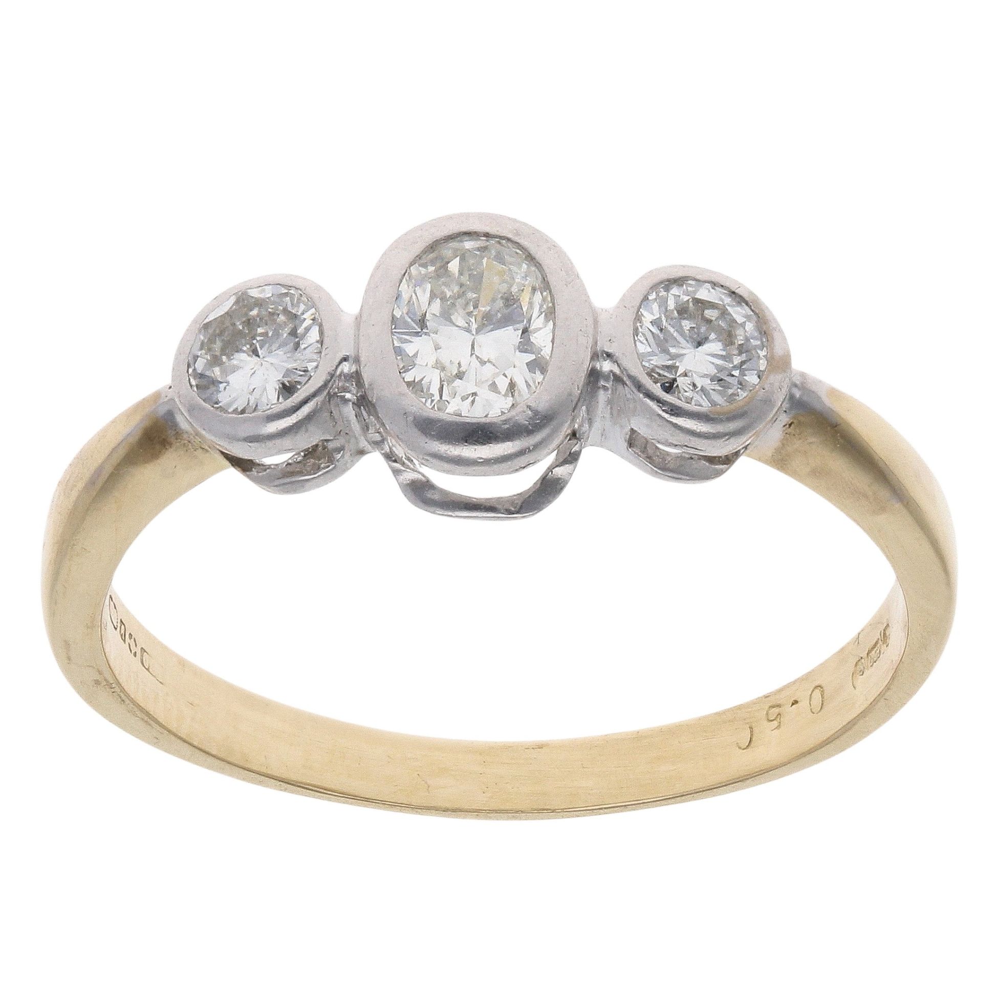 18ct Yellow Gold 0.50ct Brilliant And Oval Cut Diamond Trilogy Ring