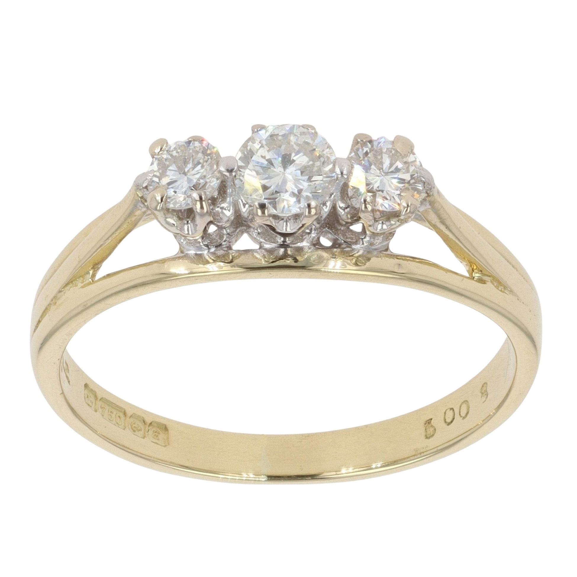 18ct Yellow Gold 0.50ct Brilliant Cut Diamond Trilogy Ring