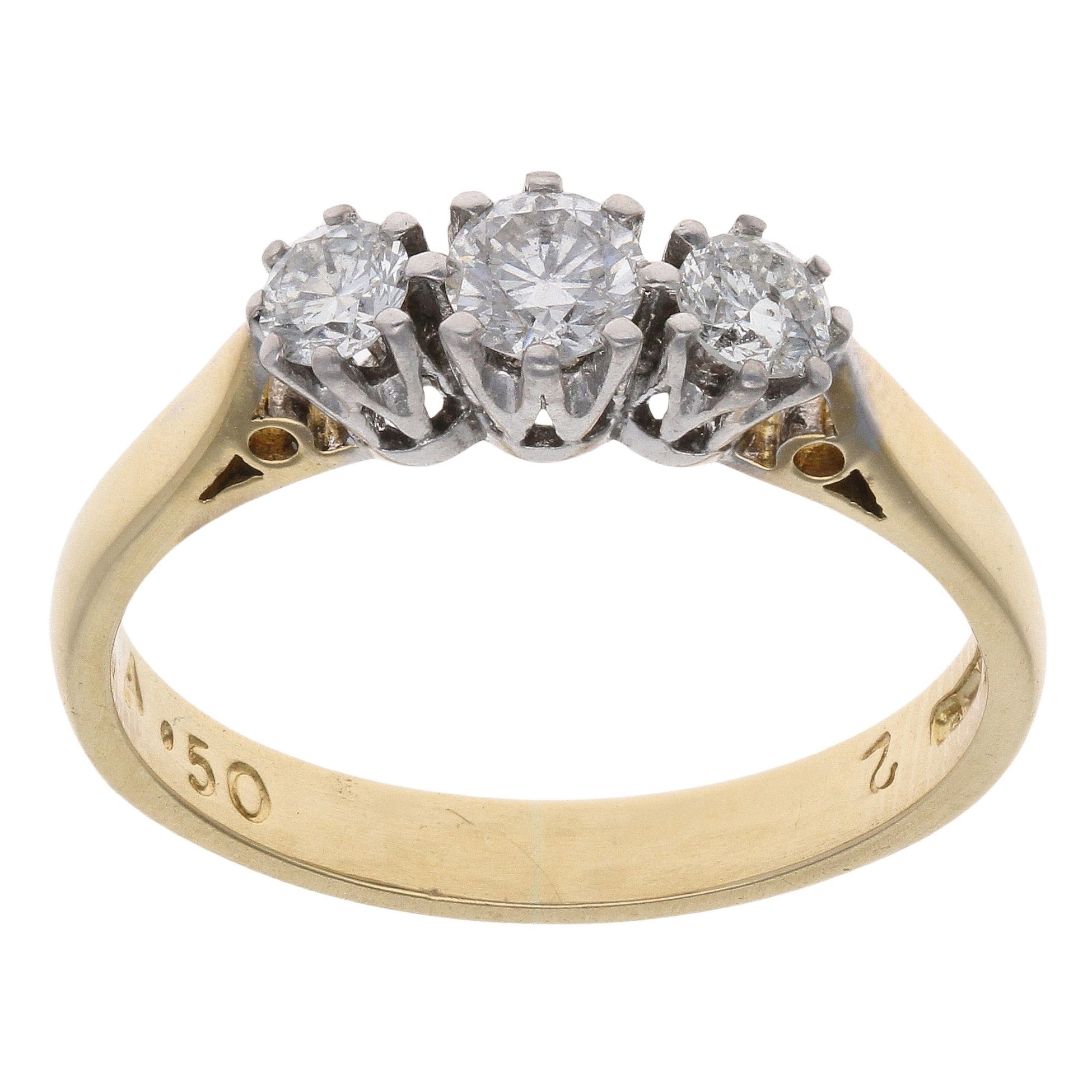 18ct Yellow Gold 0.50ct Brilliant Cut Diamond Trilogy Ring