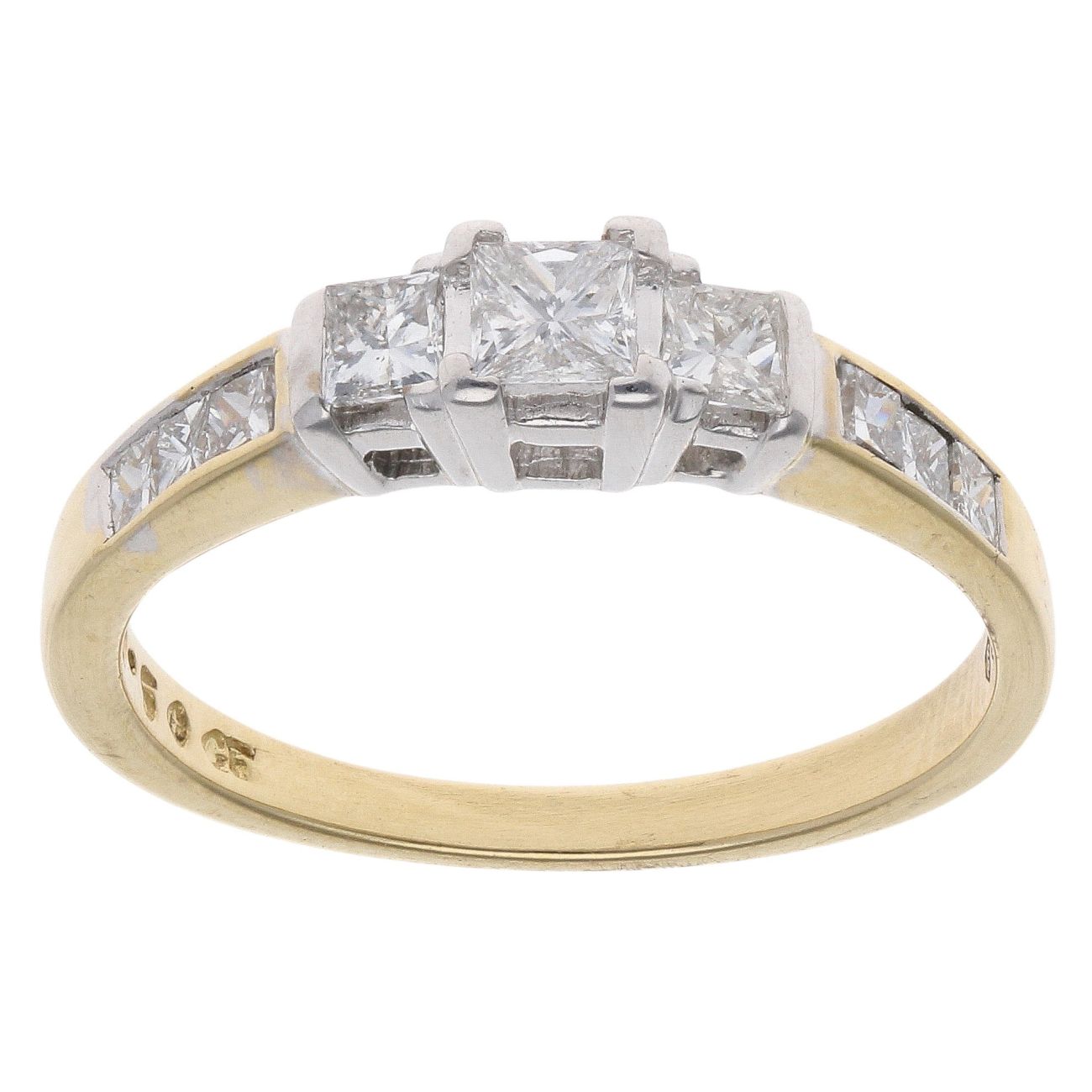 18ct Yellow Gold 0.50ct Princess Cut Diamond Trilogy Ring