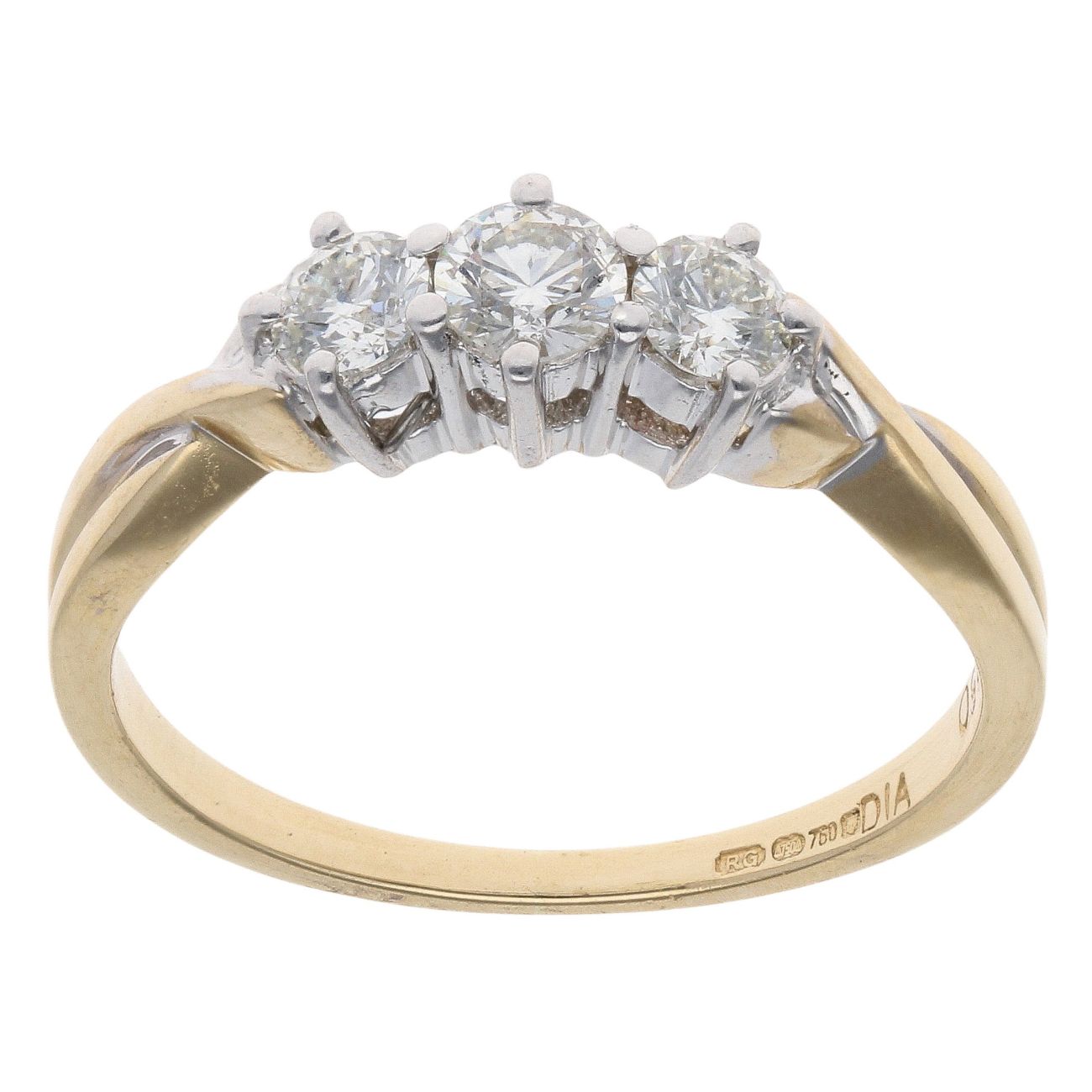 18ct Yellow Gold 0.55ct Brilliant Cut Diamond Trilogy Ring