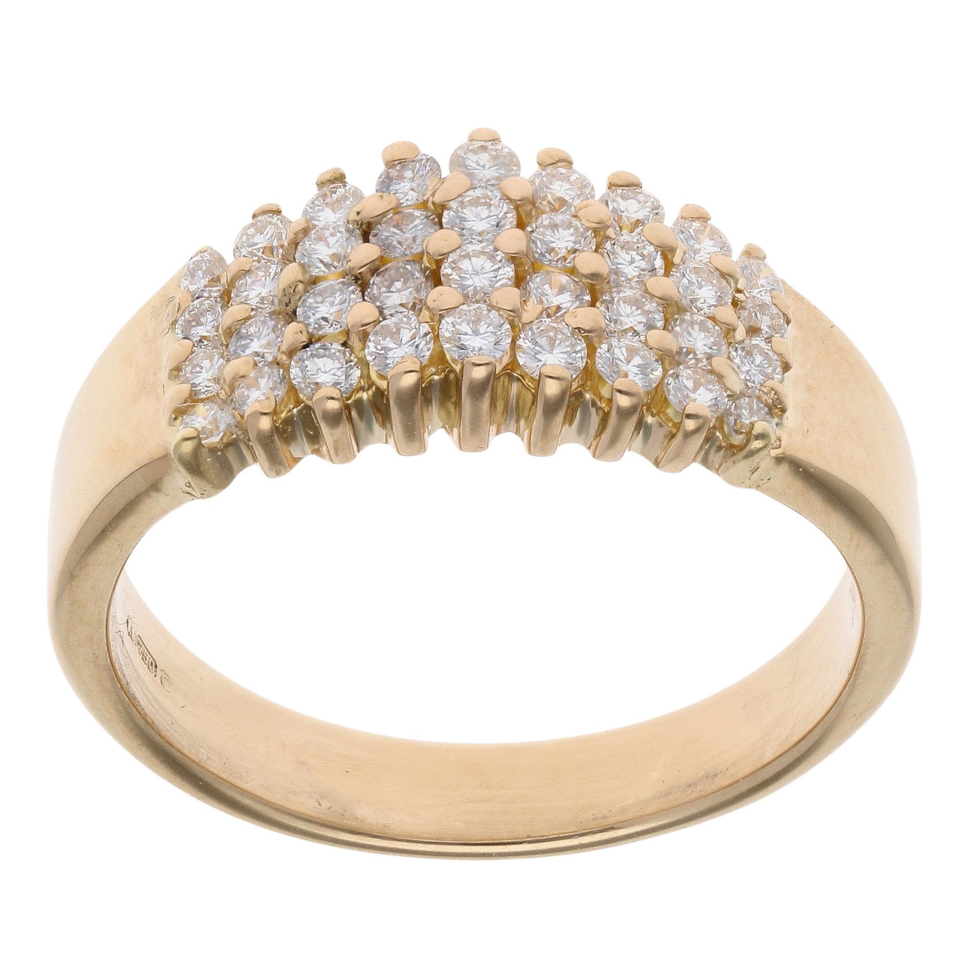18ct Yellow Gold 0.60ct Brilliant Cut Diamond Four Row Cluster Ring