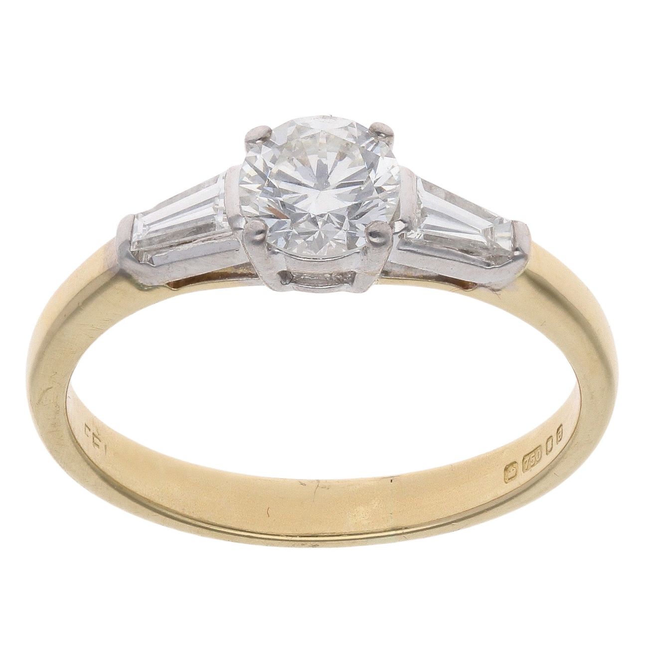 18ct Yellow Gold 0.65ct Brilliant And Baguette Cut Diamond Solitaire Ring