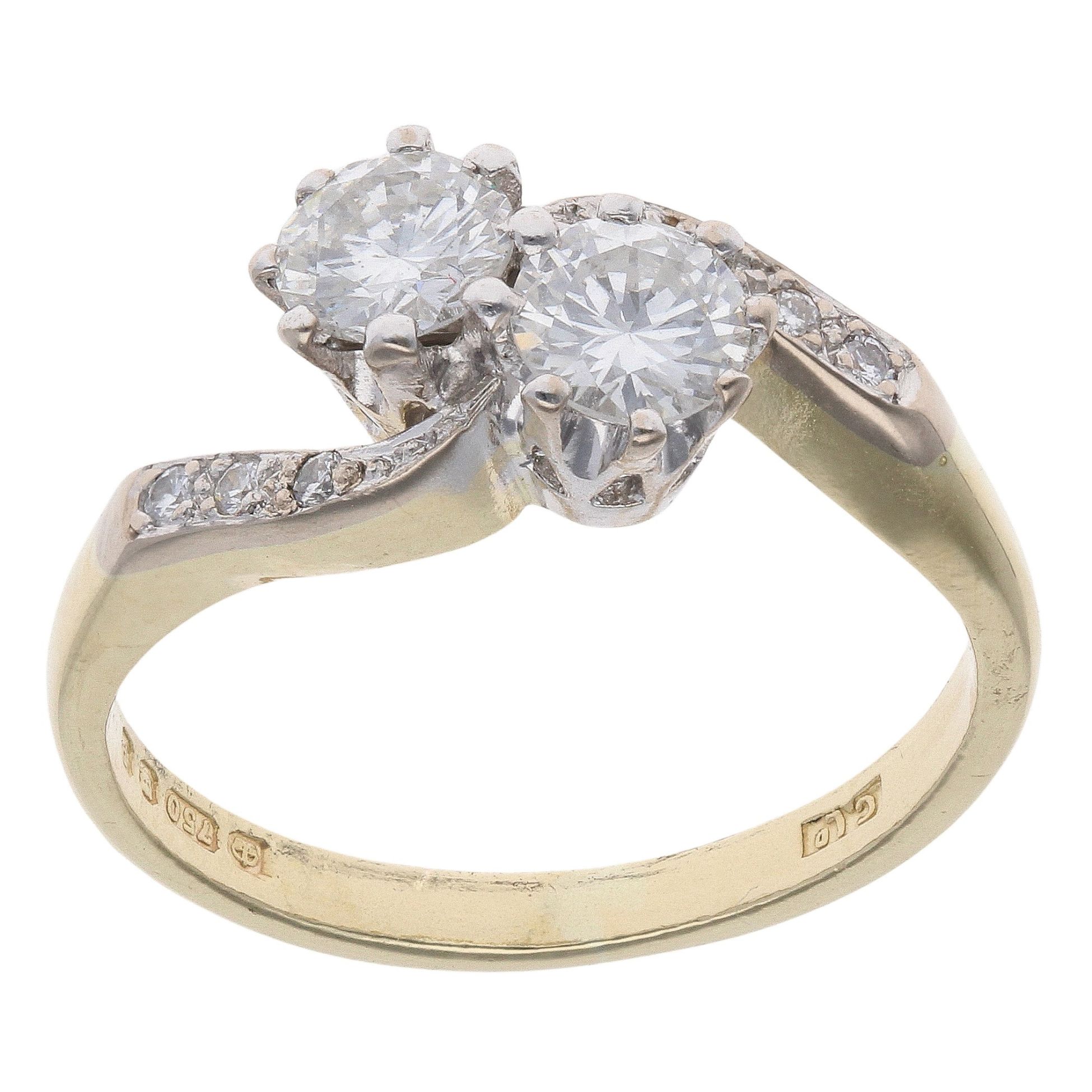 18ct Yellow Gold 0.65ct Brilliant Cut Diamond Two Stone Ring