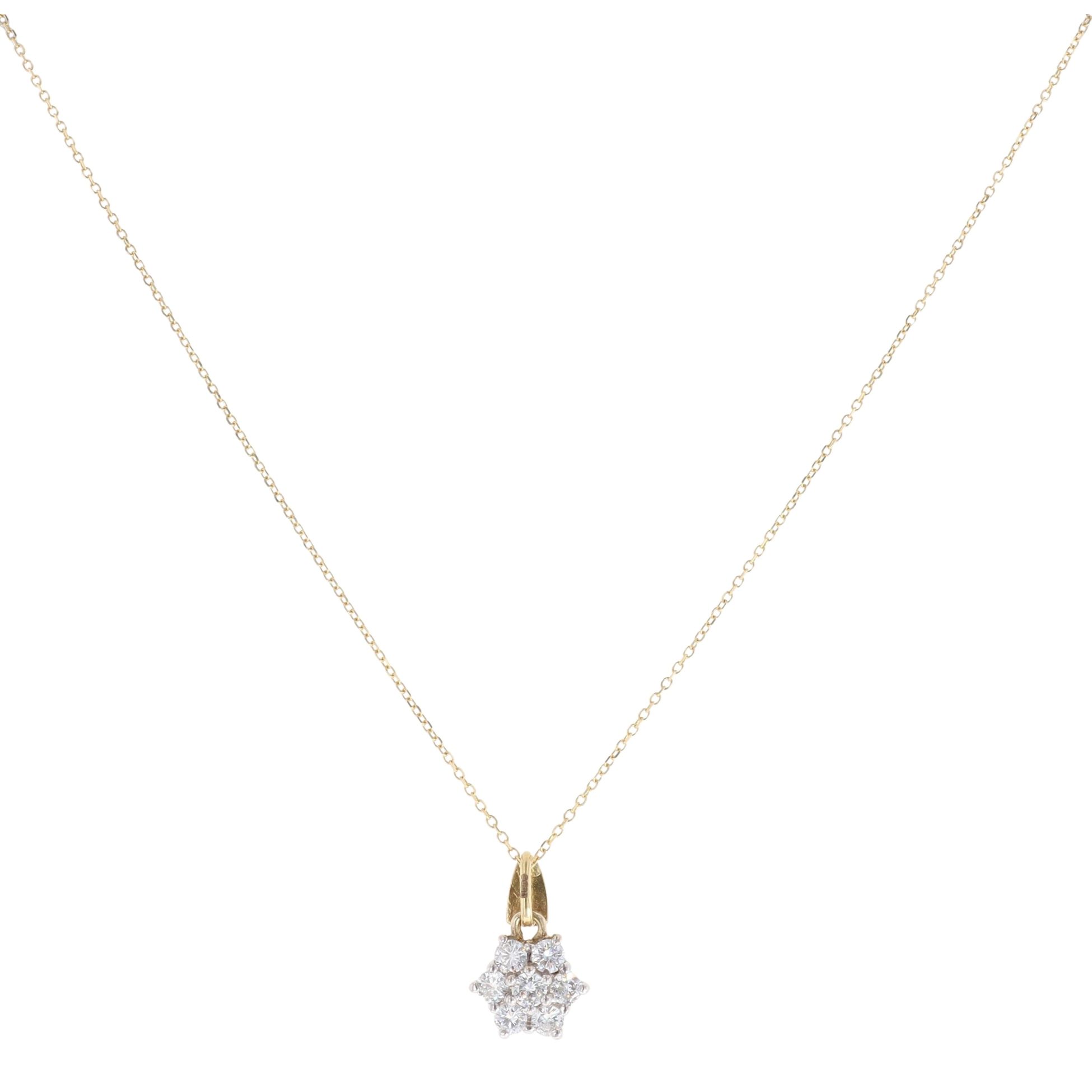 18ct Yellow Gold 0.75ct Brilliant Cut Diamond Cluster Pendant And Chain 18"