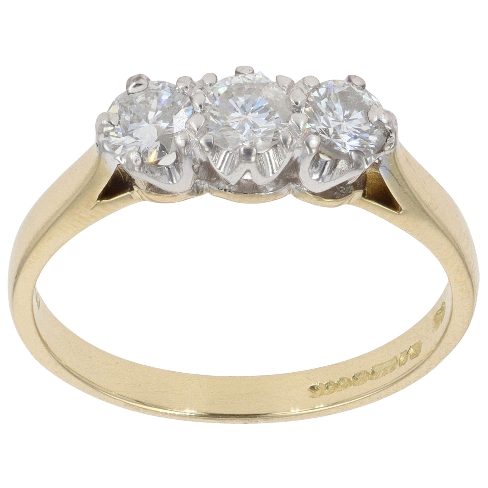 18ct Yellow Gold 0.75ct Brilliant Cut Diamond Trilogy Ring