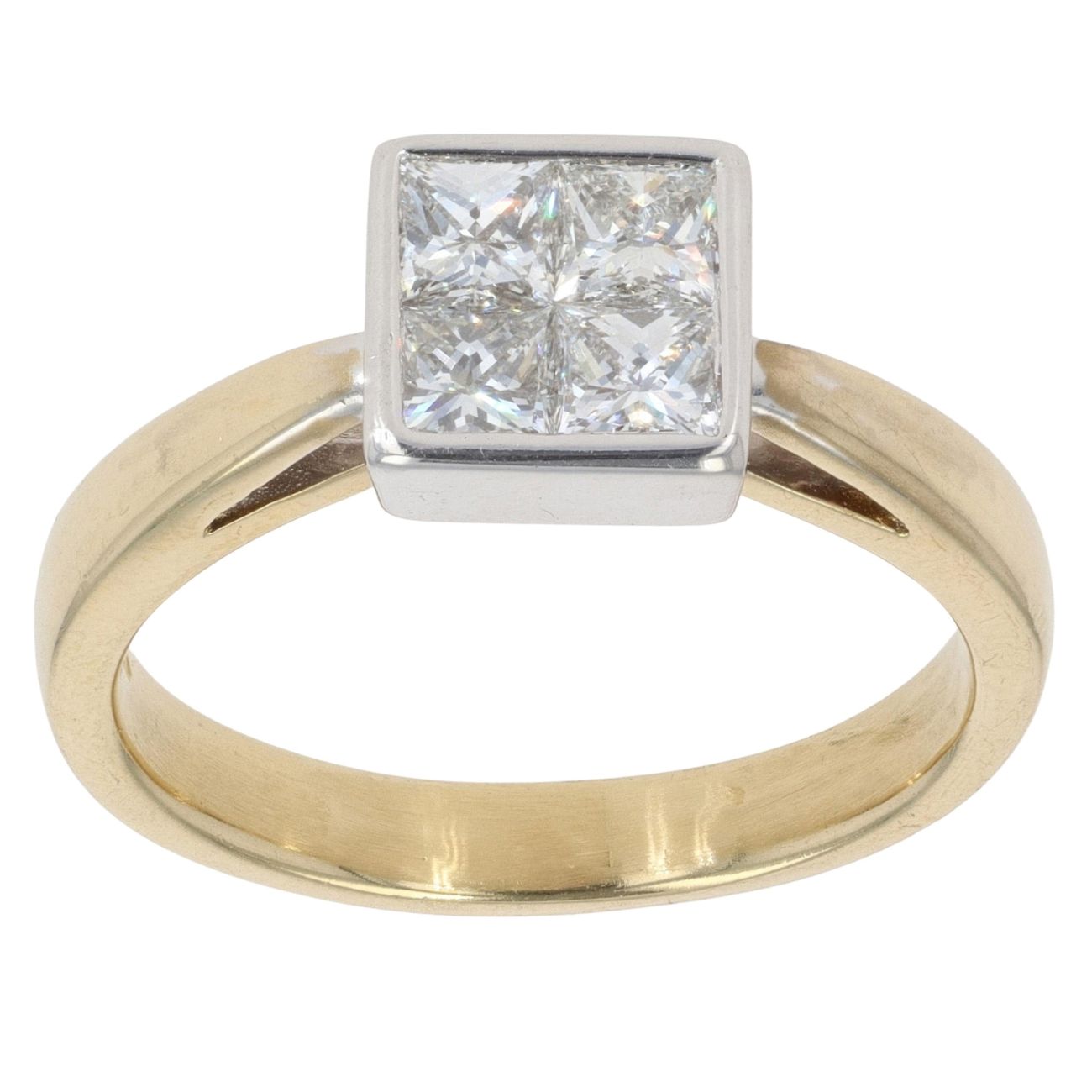 18ct Yellow Gold 0.80ct Princess Cut Diamond Cluster Ring