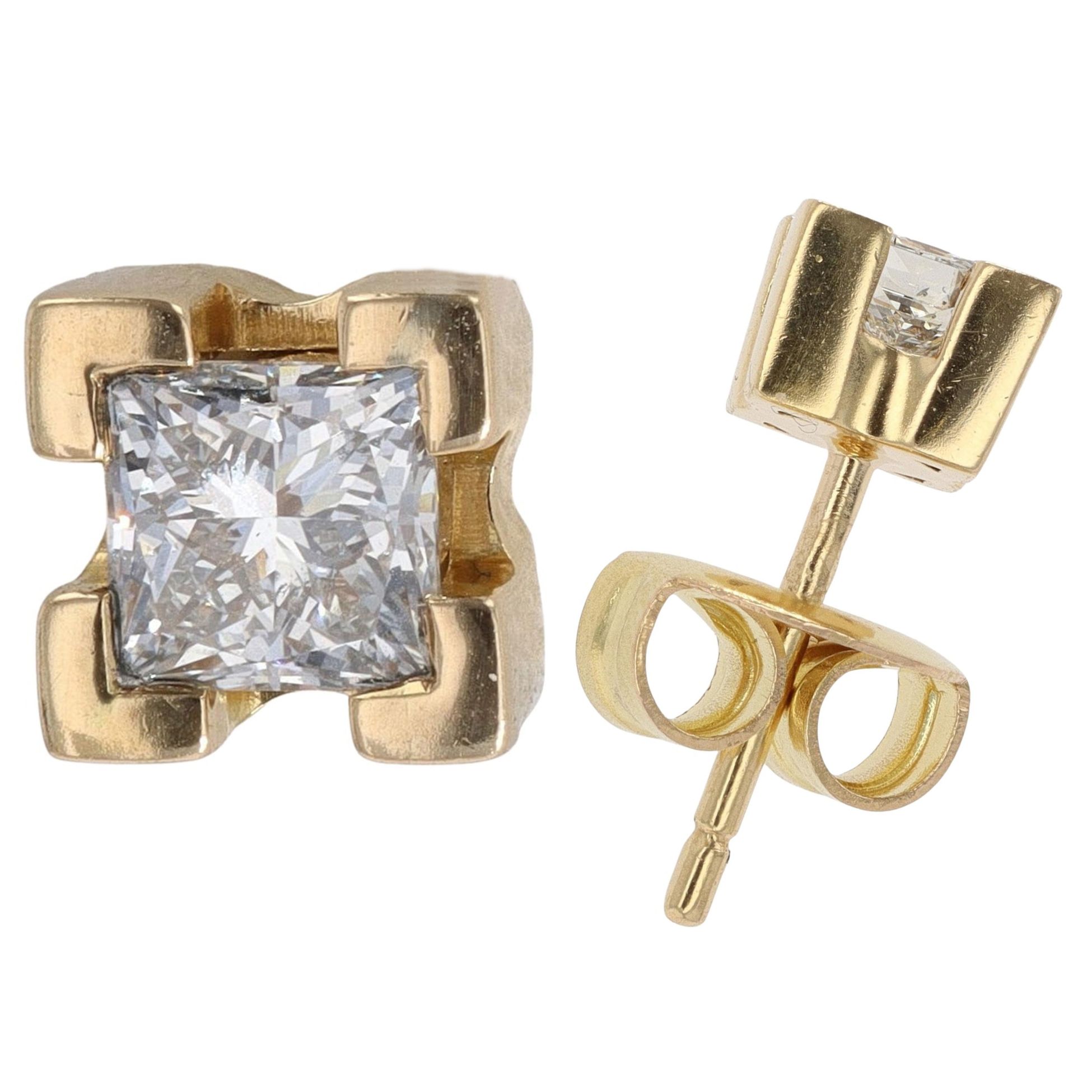 18ct Yellow Gold 0.80ct Princess Cut Diamond Stud Earrings