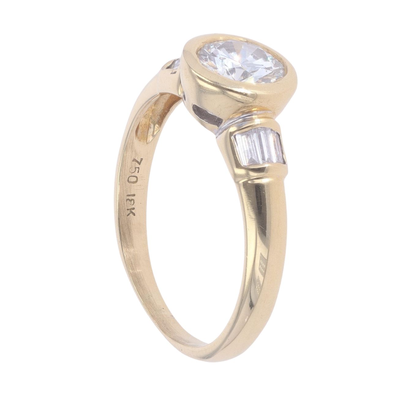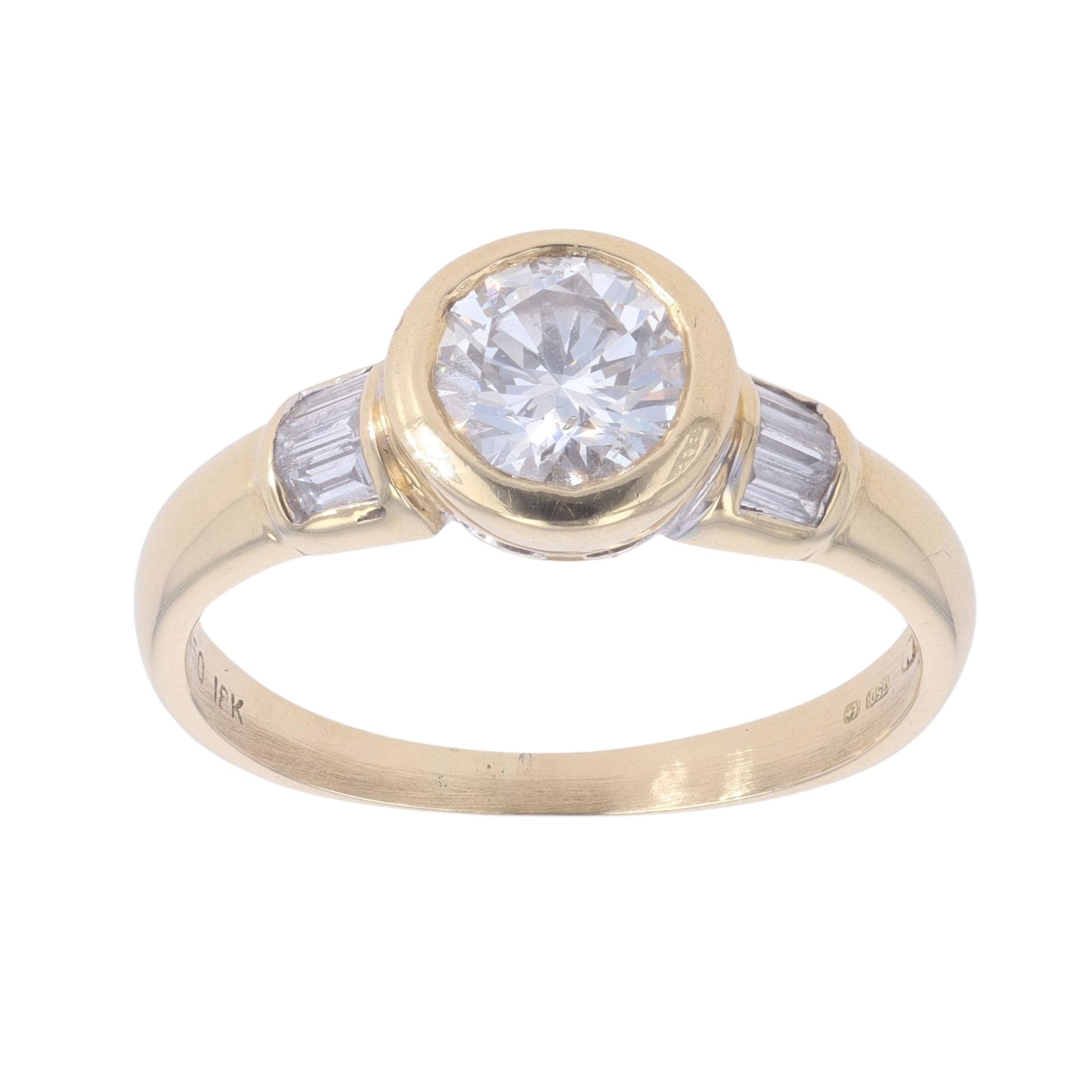 18ct Yellow Gold 0.85ct Brilliant And Baguette Cut Diamond Solitaire Ring