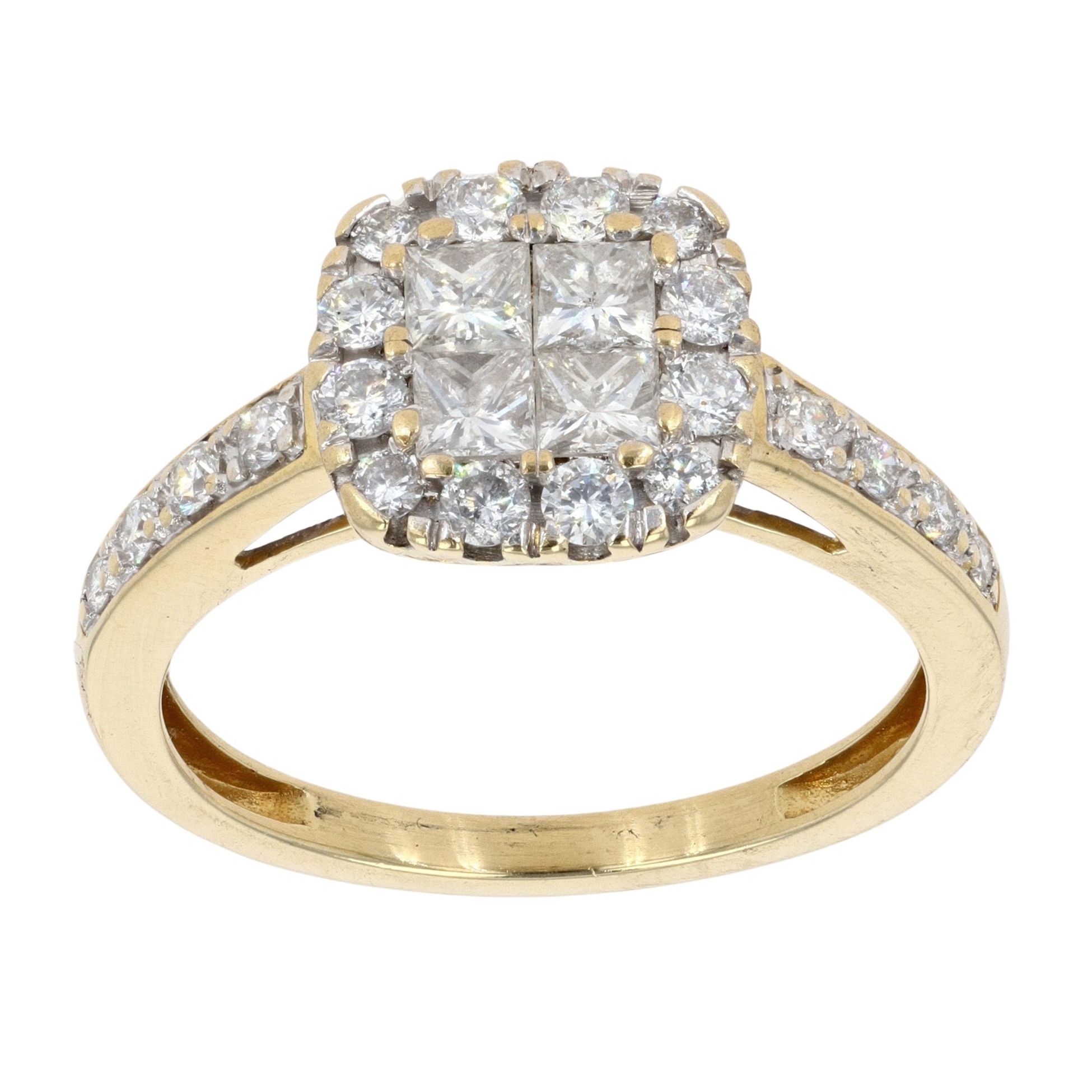 18ct Yellow Gold 0.87ct Diamond Cluster Ring