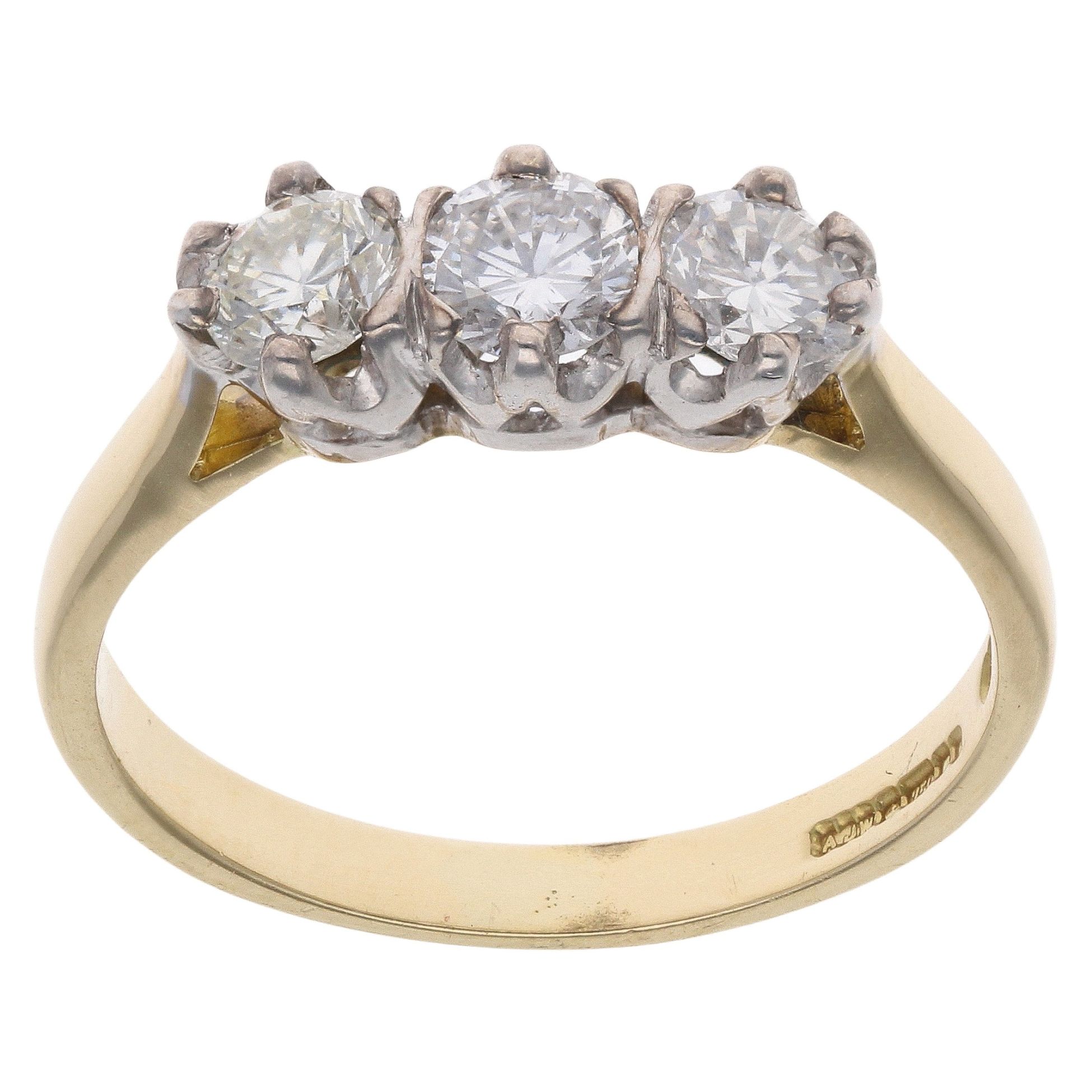 18ct Yellow Gold 0.90ct Brilliant Cut Diamond Trilogy Ring