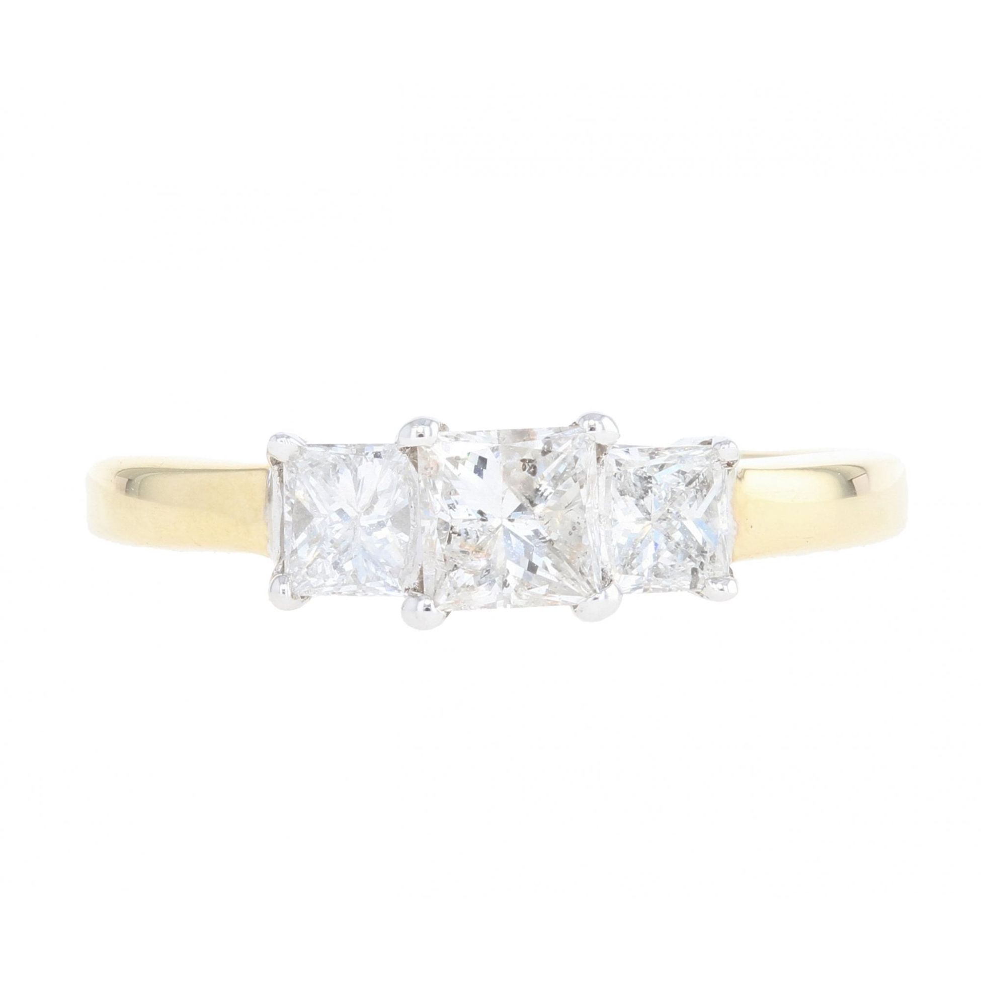 18ct Yellow Gold 1.00ct Princess Cut Diamond Trilogy Ring