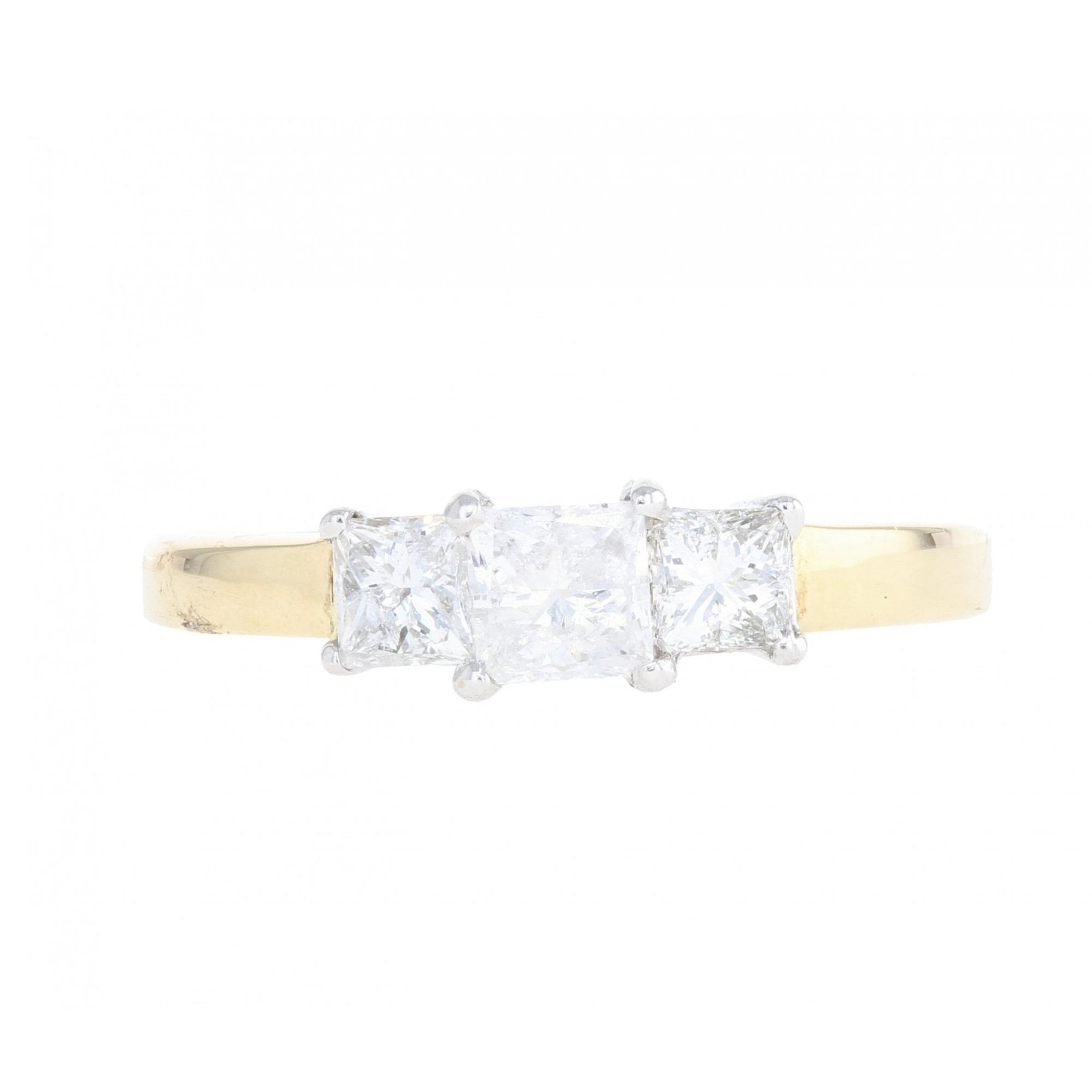 18ct Yellow Gold 1.02ct Princess Cut Diamond Trilogy Ring