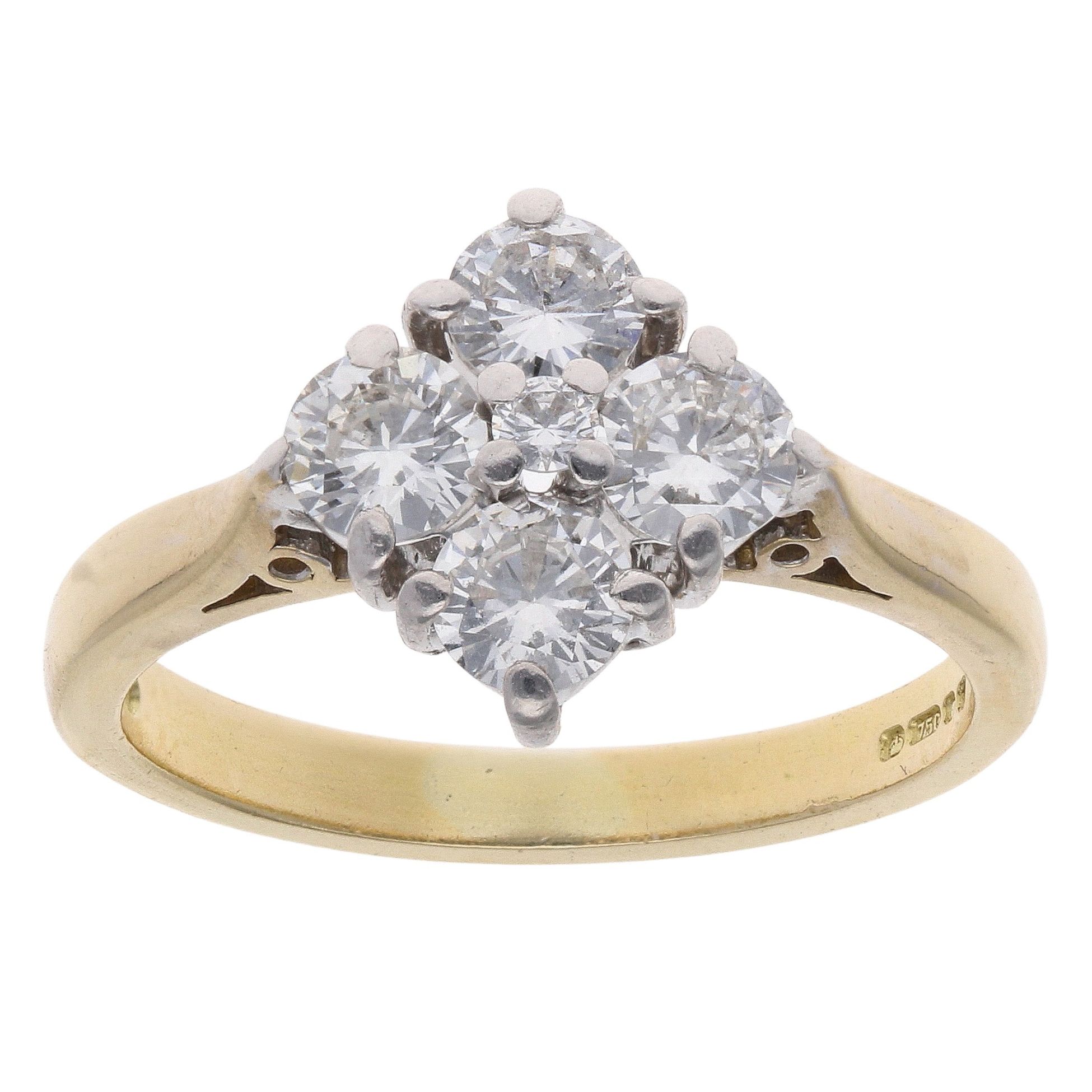 18ct Yellow Gold 1.00ct Brilliant Cut Diamond Cluster Ring