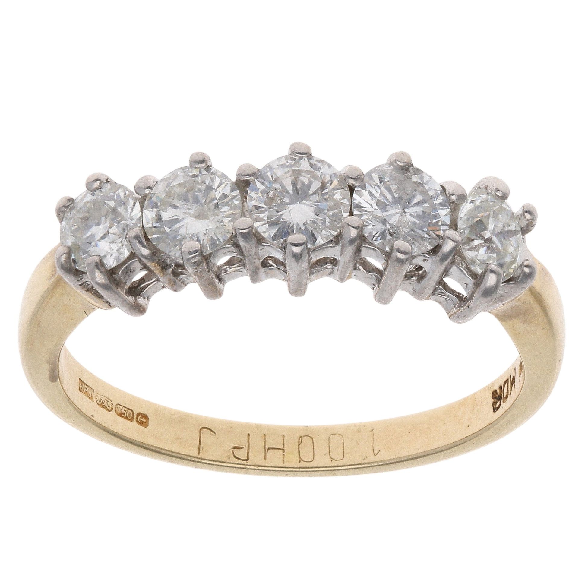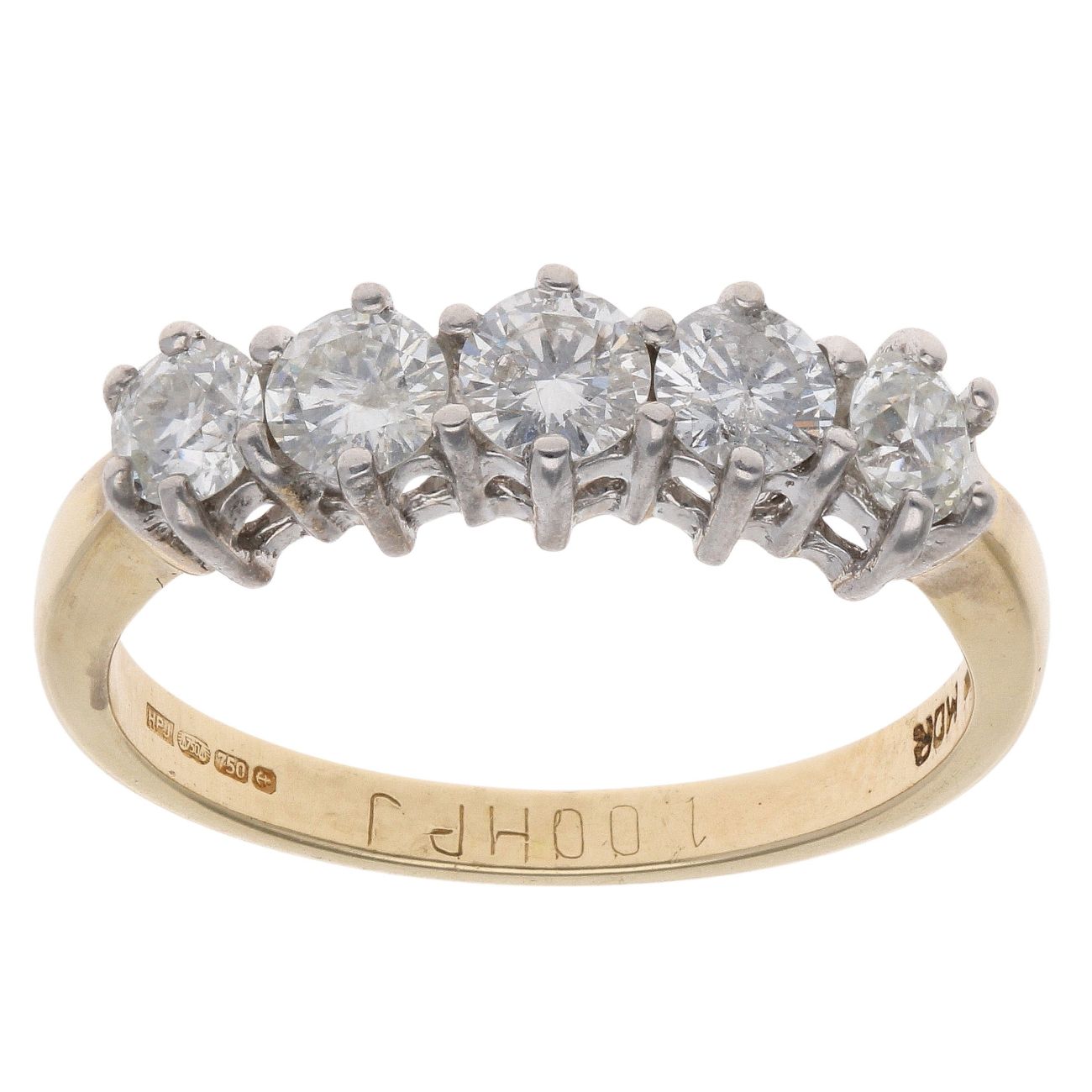 18ct Yellow Gold 1.00ct Brilliant Cut Diamond Five Stone Ring