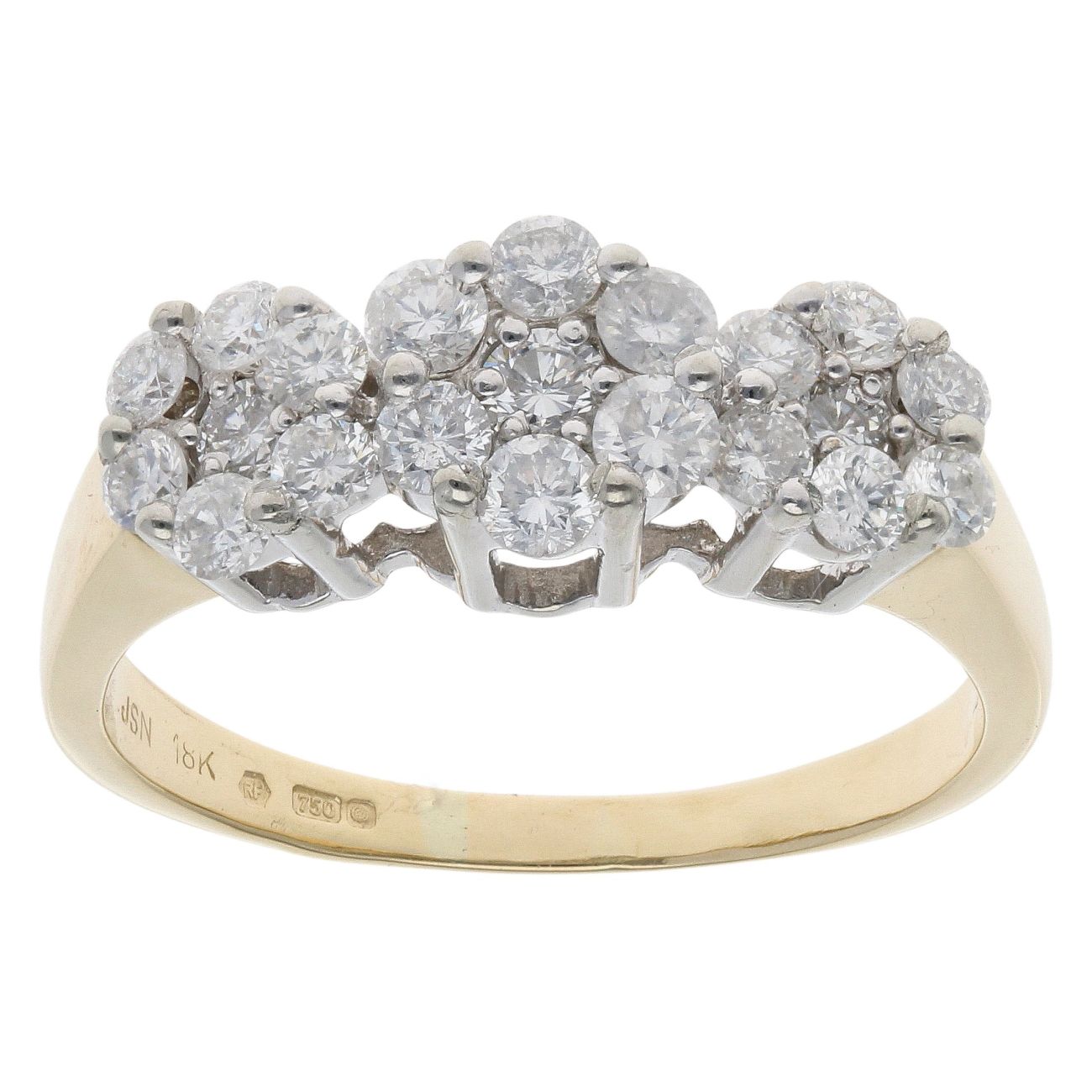 18ct Yellow Gold 1.00ct Diamond Triple Cluster Ring