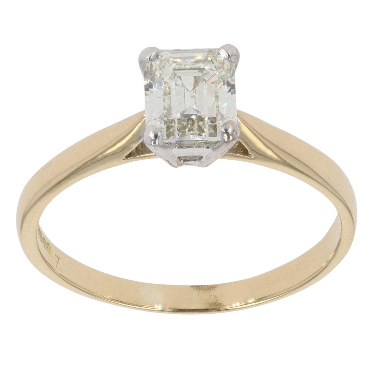 18ct Yellow Gold 1.00ct Emerald Cut Diamond Solitaire Ring