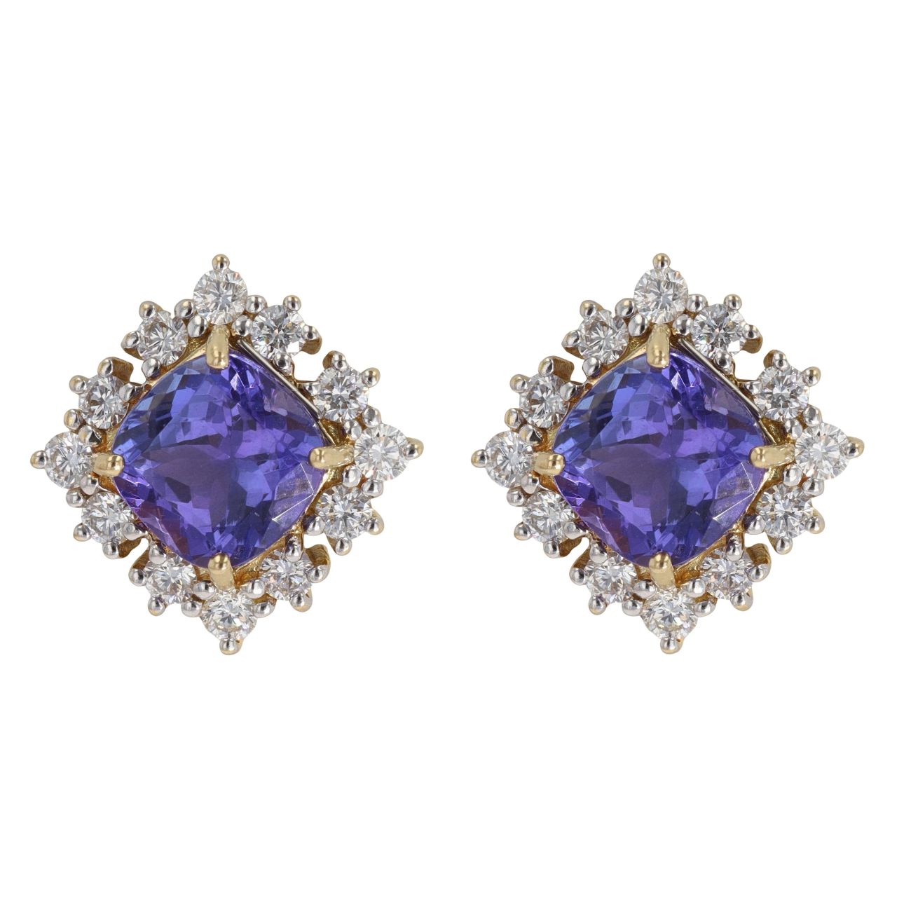 18ct Yellow Gold 1.10ct Brilliant Cut Diamond And Tanzanite Cluster Earrings
