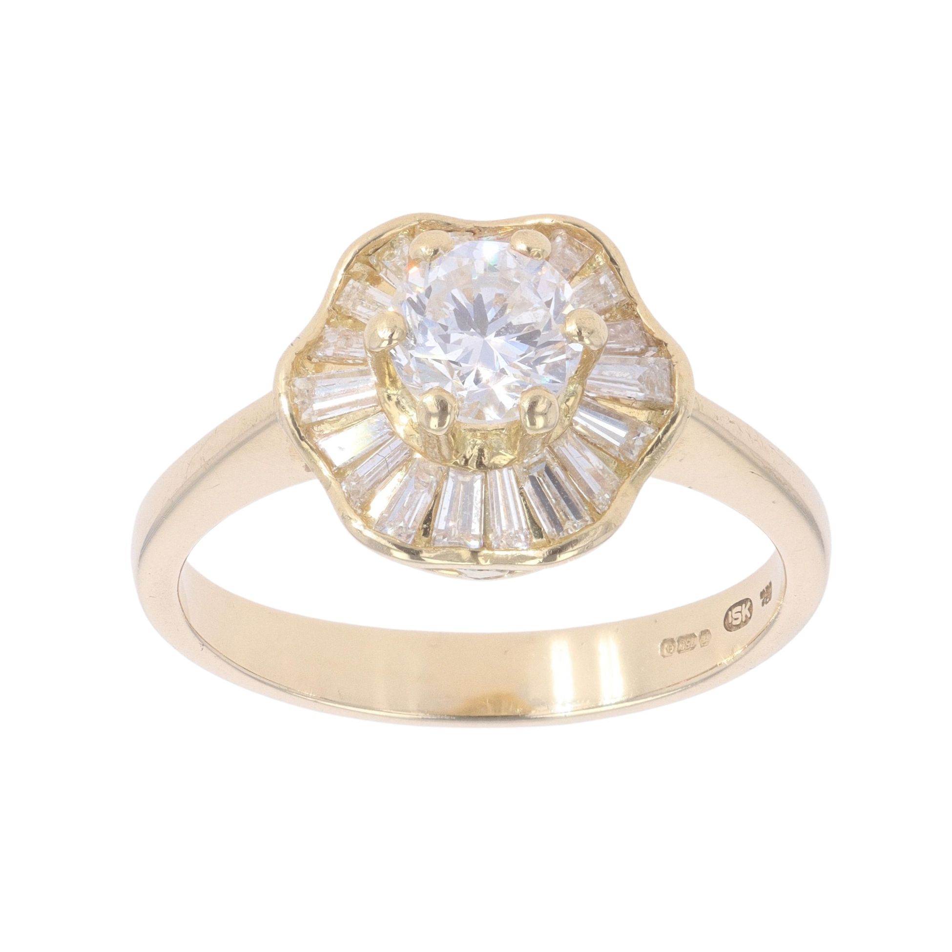 18ct Yellow Gold 1.50ct Brilliant And Baguette Cut Diamond Cluster Ring