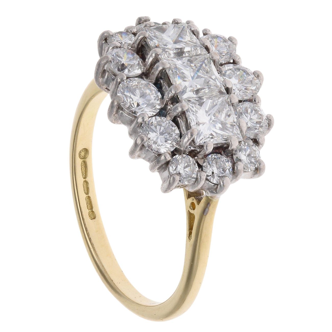 18ct Yellow Gold 2.00ct Brilliant And Princess Cut Diamond Cluster Ring