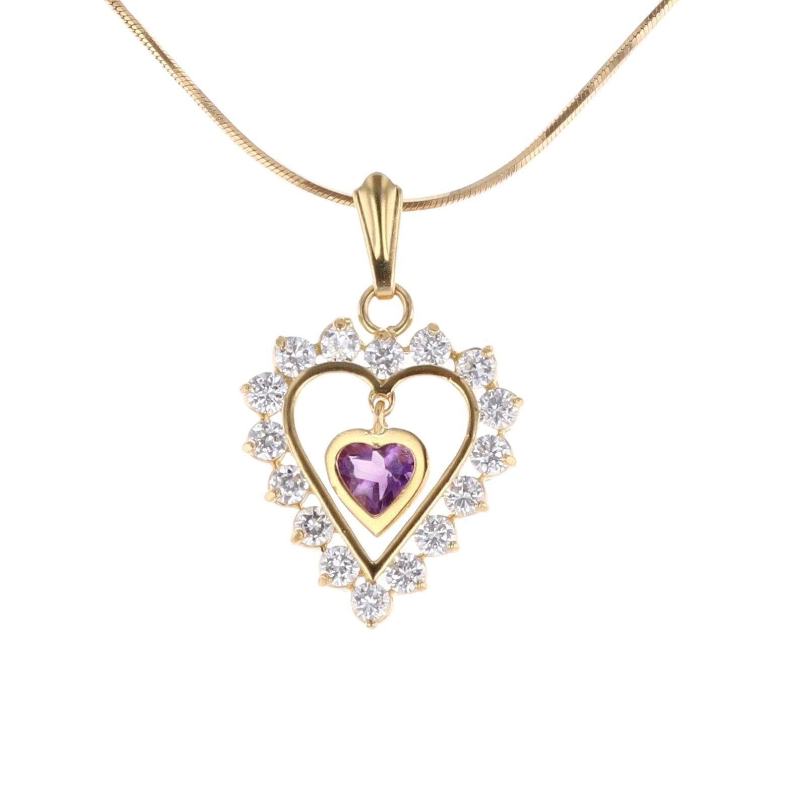 18ct Yellow Gold Amethyst and Cubic Zirconia Heart Pendant And Chain 18"