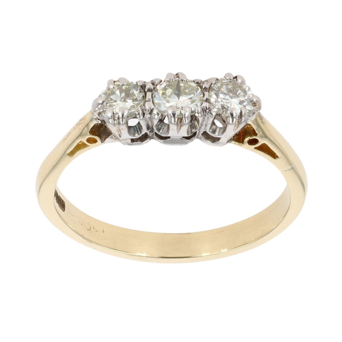 18ct Yellow Gold And Palladium 0.50ct Diamond Trilogy Ring