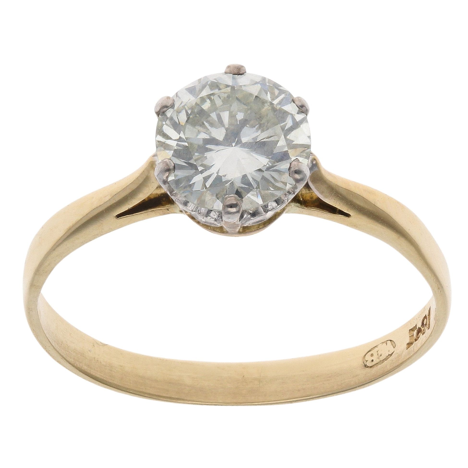 18ct Yellow Gold And Platinum 1.00ct Brilliant Cut Diamond Solitaire Ring