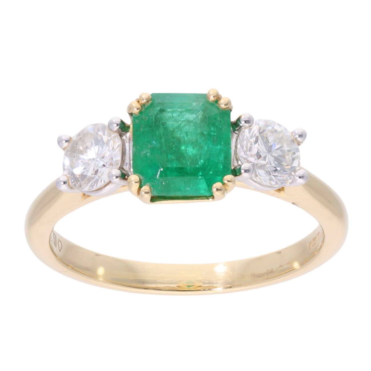 18ct Yellow Gold Emerald and 0.65ct Diamond Ring